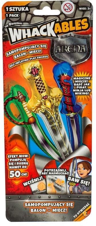 Miecz samopompujący balon Whackables 50 cm 3+ Dzięki magicznym mieczom, każdy rycerz staje się bohaterem nie do pobicia, dzięki szablom, piratem nie do zatopienia, dzięki toporom - nie do pokonania. Samopompujący się miecz - balon. Bądź jak pirat, ninja lub wiking, dzięki magicznym mieczom - zbierz wszystkie wzory! Zabawa w niezwyciężone postacie, to fascynujący czas dla każdego małego wojownika! Efekt WOW: pompują się i rosną nawet do 50 cm! Wyciągnij saszetkę z zewnętrznego opakowania! Uderz w miejscu zgrubienia! Potrząśnij saszetkę aby nadmuchać balon! Specyfikacja: Ilość: 1 sztuka Producent - WeVell