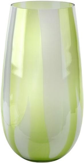 Piękny, masywny wazon szklany z naprzemian przeplatającymi się kolorami zieleni i szarości. Wazon lekko prześwituje. Posiada gładkie ściany zarówno z zewnątrz jak i środku. Ma szeroki otwór, dzięki czemu można w nim umieścić bujne bukiety kwiatów.