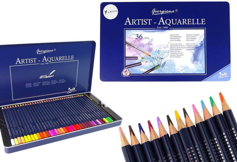 Zestaw 36 Kredek Akwarelowych Metalowy Pojemnik Nowe Brzesko