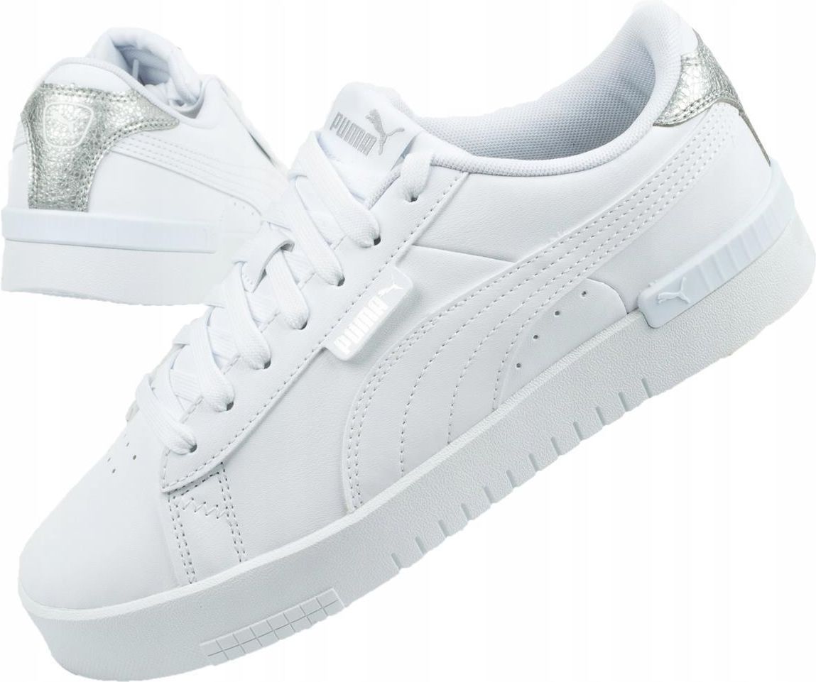 Postaw na buty damskie Puma i emanuj przywiązaniem do sportowego stylu. Dominująca, biała kolorystyka osadzona na białej podeszwie i połączona ze srebrnymi, połyskującymi detalami tworzy klasyczny, ale jednocześnie kultowy koncept wpasowujący się w wysublimowane gusta kobiet podążających za najnowszymi trendami. Bezproblemowa w utrzymaniu w czystości, syntetyczna cholewka odpowiada za utrzymanie wygody na wysokim poziomie. Umieszczone z przodu perforacje wspomagają naturalny proces wentylacji stóp. Klasyczne sznurowanie pozwala osiągnąć precyzyjne dopasowanie do stopy oraz dodatkowo utrzymuje ją we właściwym miejscu w trakcie chodzenia. Opatentowana przez markę wkładka o właściwościach antybakteryjnych SoftFoam+ odwzorowuje kształt stopy i w połączeniu z tekstylnym wnętrzem dba o nieprzerwane uczucie komfortu i amortyzację każdego kroku. Solidna, gumowa podeszwa zapewni odpowiednią przyczepność na wielu podłożach. Monochromatyczna, nowoczesna sylwetka obuwia zainspirowana modelami noszonymi na kortach tenisowych pozwoli Ci na wyrażenie indywidualnego stylu niezależnie od tego, dokąd aktualnie się wybierasz. Buty lifestyle damskie Puma wprowadzą element świeżego powiewu do Twoich, codziennych zestawień w modnym wydaniu.