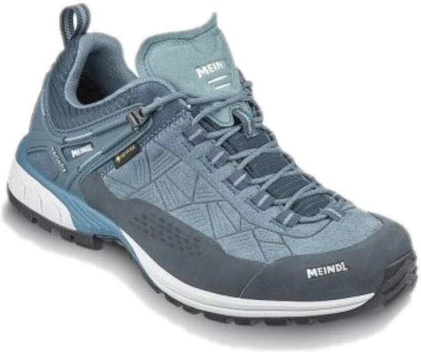 Buty turystyczne damskie Meindl Top Trail Lady GTX - turquoise niski model dla miłośniczek hikingów. Cholewka butów wykonana została z połączenia zamszu oraz siatkowych wstawek. O suchość stóp podczas wędrówek w dni z opadami zadba laminat GORE-TEX® Performance Comfort Footwear. Prezentowane buty wykorzystują autorskie rozwiązanie producenta, jakim jest Variofix® 3 System. Ma on za zadanie zapewnić pięcie najbardziej komfortowe ułożenie w bucie za sprawą jej stabilizacji. Podczas sznurowania, specjalna linka jest dokładnie i równomiernie przeciągana oraz rozkładana wokół pięty, co zapewnia jej optymalne wsparcie. Buty turystyczne damskie Meindl Top Trail Lady GTX - turquoise wykorzystują wodoodporną membranę GORE-TEX® Performance Comfort Footwear, która zapewnia komfort suchych stóp podczas hikingów w deszczowe dni. Laminat ten dodatkowo zapewnia stopom ochronę przed przegrzaniem. Buty wyposażono w wewnętrzną wkładkę AIR-ACTIVE®, która dba o wysoki komfort noszenia obuwia dzięki właściwościom antybakteryjnym i zdolności do szybkiego wysychania. Dobrą trakcję zapewni podeszwa zewnętrzna Meindl Multigrip® G5 Hiking wykonana z wysoce odpornej na ścieranie gumy. Buty Meindl Top Trail Lady GTX - turquoise - najważniejsze cechy:Hikingowy model o niskiej wadze;Niska cholewka wykonana ze skóry zamszowej i siatki;Membrana GORE-TEX® Performance Comfort Footwear;Wkładka wewnętrzna AIR-ACTIVE® zapewnia optymalną amortyzację na całej powierzchni;AIR-ACTIVE® sprawnie wysycha i wykazuje właściwości antybakteryjne;Klasyczne sznurowanie;Częściowy, gumowy otok zabezpieczający przód i boki cholewki;Rozwiązanie Variofix® 3 System zapewnia idealne dopasowanie buta do stopy;Variofix® 3 System stabilizuje piętę i zapewnia jej maksymalnie komfortowe ułożenie;Gumowa podeszwa zewnętrzna Meindl Multigrip® G5 Hiking;Klasyfikacja twardości podeszwy Meindl: A;Podeszwa typu A sprawdzi się podczas lekkich hikingów, wycieczek oraz codziennego użytkowania.