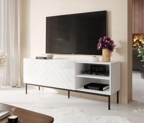 Cama Meble Szafka Rtv Abeto Na Czarnym Stelażu Ze Stali 150X42X60 Białybiały Połysk 257309 Nowe Miasteczko