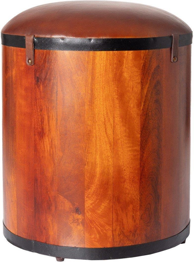 Nietuzinkowa pufa beczka ze skórzanym siedziskiem. Pufa beczka z siedziskiem wykonanym z naturalnej skóry bawolej to doskonałe połączenie stylu, komfortu i trwałości. Ten wyjątkowy mebel doskonale sprawdzi się jako siedzisko, które może stać się dekoracyjnym punktem Twojego wnętrza. Niepowtarzalny design przypomina kształtem klasyczną beczkę, co nadaje pufie niezwykłego uroku i oryginalności. Wykorzystana skóra zapewnia wytrzymałość, wygodę i luksusowy wygląd. Skórzane siedzisko to wygodne miejsce do czytania, rozmów lub odpoczynku. Pufa Oran to zdecydowanie praktyczny dodatek do Twojego wnętrza oraz wyjątkowy element dekoracyjny, który doda elegancji i charakteru każdemu pomieszczeniu. Wymiary: śr. 42 cm, wys. 50 cm.Materiał: naturalna skóra bawola / drewno mango. Kolor: brązowy / naturalny.