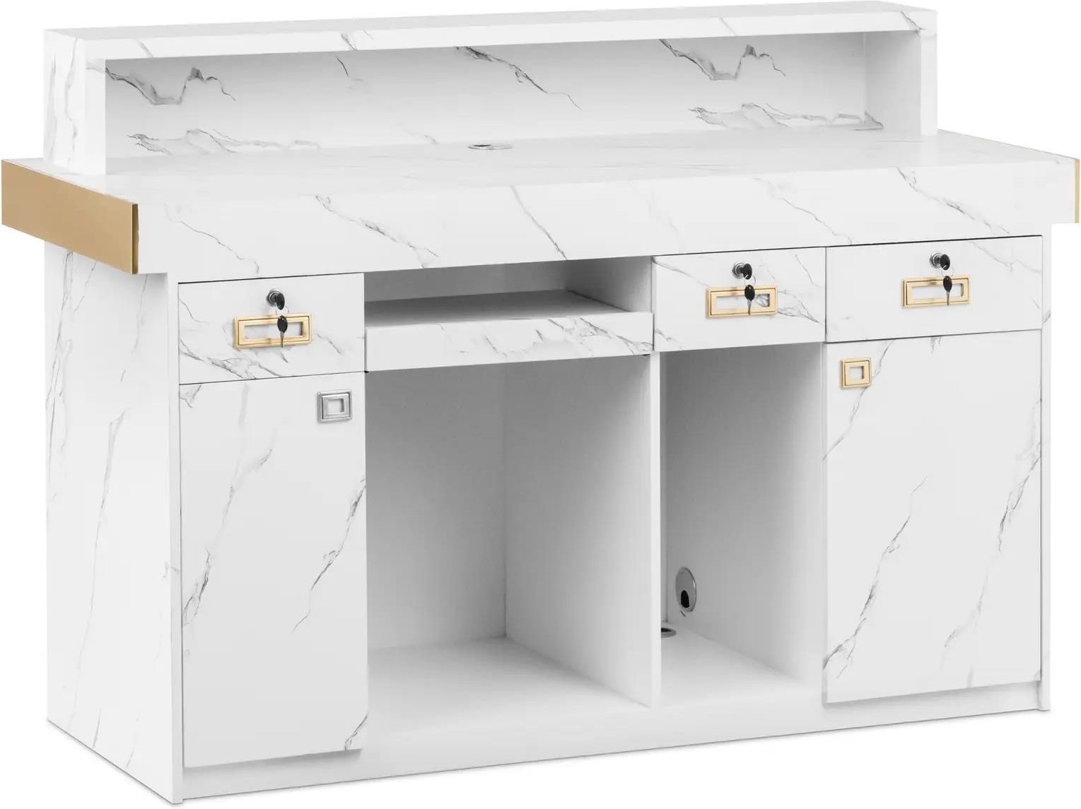 Lada recepcyjna - z oświetleniem pośrednim - zamykana - wysuwana półka na klawiaturę - marmurowy design - physa - PHY_RD_03 Nowe Miasteczko