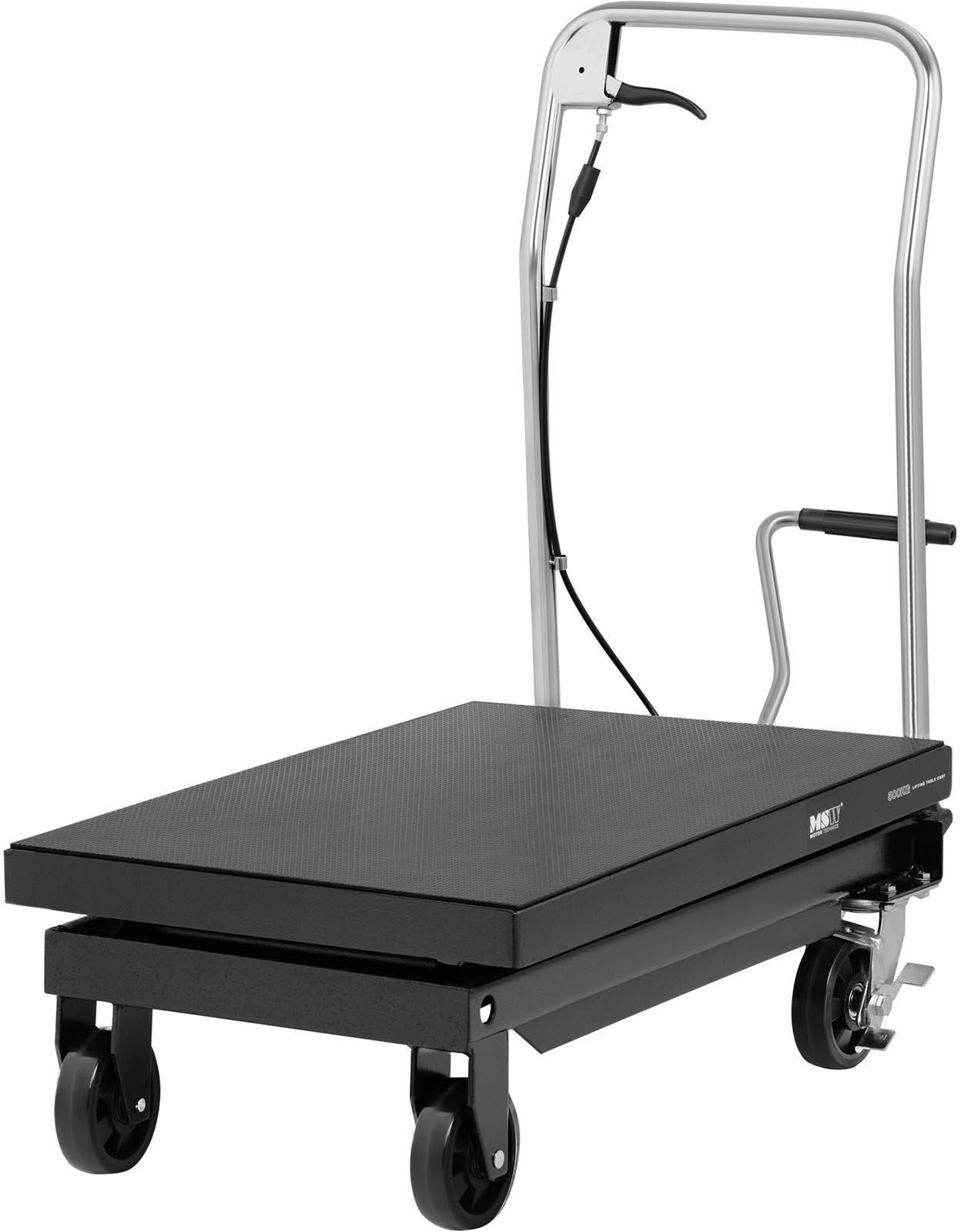 Wózek podnośnikowy - 500 kg marki MSW Model: MSW-LTC500 Nr katalogowy: 10061294 Stan produktu: Nowy Najważniejsze cechy produktu Wydajność – obciążenie do 500 kg Profesjonalizm – podnoszenie w zakresie 280-860 mm Wytrzymałość – solidna stalowa konstrukcja Pojemność – platforma o wymiarach 815 x 500 mm Mobilność – wbudowane cztery kółka w tym dwa skrętne Specyfikacja techniczna Instrukcja obsługi - Tak Maksymalne obciążenie - 500 kg Liczba kółek - 4 Pc Materiał - Stal Wysokość unoszenia [mm] - 280-860 Rozmiar blatu - 815 x 500 Wysokość paczki [cm] - 31 Długość paczki [cm] - 97 Szerokość paczki [cm] - 56 Waga paczki [kg] - 79.8 Wysokość produktu [cm] - 96 Długość produktu [cm] - 114 Szerokość produktu [cm] - 50 Waga produktu [kg] - 74.3 Liczba paczek - 1 Wózek podnośnikowy do 500 kg MSW Wózek podnośnikowy marki MSW to praktyczny sprzęt stworzony z myślą o użytku w warsztatach samochodowych, magazynach i prywatnych garażach. Model MSW-LTC500 służy do podnoszenia i przewożenia obiektów o wadze do 500 kg. Dzięki temu idealnie nadaje się do użytku zarówno profesjonalnego, jak i prywatnego. Stół podnośny MSW-LTC500 – opis Duża pojemność produktu pozwala na przewiezienie nawet gabarytowych przedmiotów. Platforma ma wymiary 815 x 500 mm. Została ona wykonana ze stali odpornej na obciążenia. Wygodne użytkowanie wynika m.in. z zakresu podnoszenia od 280 do 860 mm. Dzięki niemu uniesiesz obiekt na pożądaną wysokość. Z kolei 4 kółka umożliwiają przewożenie modelu MSW-LTC500 po warsztacie. Dwa z nich są skrętne, więc manewrowanie jest proste. Szerokie zastosowanie wózka podnośnikowego z pewnością zostanie docenione w niejednej pracowni czy magazynie. Złóż zamówienie już dziś! Zawartość przesyłki Oferujemy następujący zestaw: Wózek podnośnikowy Instrukcja obsługi Całość jest starannie zapakowana. Zdjęcia produktu