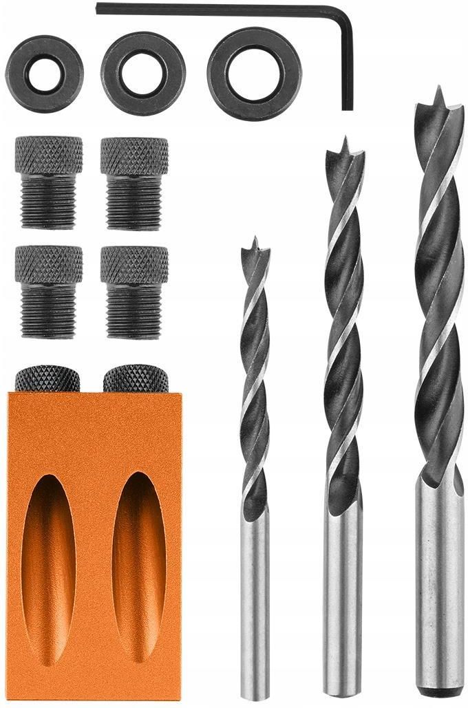 Zestaw NEO TOOLS umożliwiający przeprowadzenie precyzyjnego, szybkiego, a także gwarantującego stabilność łączenia dwóch desek. Dodatkowo, ze względu na sposób wiercenia oraz zestawienia drewna, pozostaje ono estetyczne oraz nie eksponuje elementów łączących.