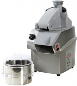 Profesjonalny cutter marki HALLDE o pojemności misy 3 l do przygotowywania żywności w postaci mokrej, suchej i płynnej. Umożliwia rozdrabnianie, mielenie, miksowanie i mieszanie mięsa, ryb, owoców i warzyw, orzechów, migdałów, parmezanu, czekolady, suchego pieczywa itp. Kuter jest znakomitym rozwiązaniem do przygotowywania dressingów, olejów ziołowych, zagęszczaczy, puree, bułki tartej, majonezów, deserów, pasztetów i innych. Urządzenie jest zasilanie jednofazowo (230V). Model Combi Cutter CC-32S jest sprzedawany z przystawką do szatkowania oraz z przystawką pionową (kuter/mikser). Model CC-32S ma dwie prędkości : większą (1500 obr/min) jako kuter-mikser, oraz mniejszą (500 obr/min) do przygotowywania warzyw. Urządzenie rozpoznaje automatycznie, jaka przystawka jest na nim zamontowana i samoczynnie dobiera dostępne prędkości. Przystawka do szatkowania warzyw umożliwia uzyskanie plastrów, wiórków oraz słupków. Nie współpracuje z tarczami do kostki i frytek. Urządzenia z serii Combi Cutter firmy HÄLLDE stanowią doskonałe uniwersalne rozwiązanie dla mniejszych kuchni. Model CC-32S łączy w sobie funkcje oferowane przez urządzenia typu kuter-mikser i urządzenia do przygotowywania warzyw. Jest niewielkie i kompaktowe, dzięki czemu można je łatwo schować i wyjąć w razie potrzeby. Urządzenie CC-32S jest wykonane wyłącznie z materiałów posiadających certyfikaty higieniczne. Posiada ono gładkie powierzchnie i zaokrąglone brzegi, co eliminuje niepotrzebne zagłębienia, w których mogłyby utknąć resztki żywności. Wszystkie ruchome części można łatwo odłączyć, co pozwala na ich szybkie oczyszczenie i łatwe umycie urządzenia. Wszystkie ruchome części można umyć w zmywarce. Podstawa jest wykonana z wytrzymałego tworzywa, ABS-u. Podajnik jest wykonany z poliwęglanu, a misa ze stali nierdzewnej. Ostrza narzędzi tnących są produkowane wyłącznie z najwyższej jakości nierdzewnej stali nożowej. Mocny silnik dysponuje dużym momentem obrotowym, a jego prędkość obrotowa została zredukowana, dzięki czemu urządzenia z serii CC-32S są bardzo niezawodne, bez względu na rodzaj przetwarzanych produktów. Gdy silnik potrzebuje większej mocy, zostaje do niego doprowadzony większy prąd, co pozwala utrzymać równomierną prędkość obrotową. Podniesienie tarczy dociskowej powoduje zatrzymanie urządzenia i umożliwia załadowanie produktu. Zamknięcie tarczy powoduje ponowne uruchomienie urządzenia i umożliwia kontynuowanie pracy. Ta funkcja automatycznego włączania i wyłączania pozwala na bardziej wydajną pracę. Jest to niewątpliwa zaleta, szczególnie przy przygotowywaniu większych ilości produktów. Podajnik jest wyposażony w rurę podającą do długich, wąskich produktów, takich jak ogórki i por. Odłączenie podajnika powoduje całkowite odcięcie zasilania. Dzięki temu podwójnemu zabezpieczeniu nie jest możliwe włączenie się maszyny, gdy nóż jest nieosłonięty. Misa kutra-miksera ma pojemność trzech litrów i posiada szczelną pokrywę, która umożliwia przygotowywanie większych ilości zarówno płynnych, jak i suchych produktów. Kuter-mikser posiada prędkość roboczą 1500 obr/min. Budowa i kąt ustawienia noży pozwalają na osiągnięcie idealnego rezultatu w krótkim czasie. Ostrza noży są ząbkowane, co zwiększa ich odporność na zużycie.
