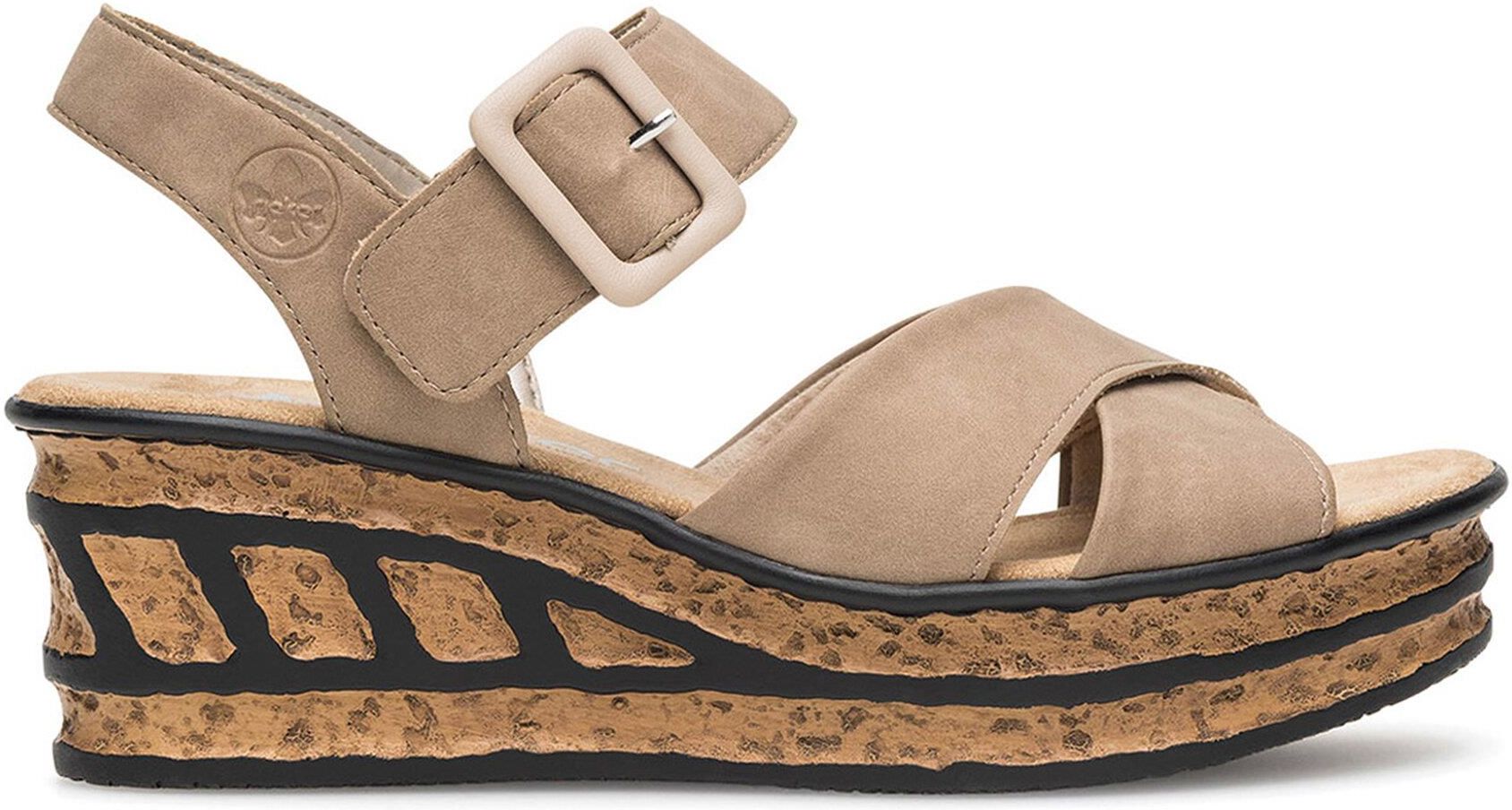 Odkryj idealny balans między stylem a komfortem z tymi sandałami marki Rieker! Połączenie koturnu i platformy podkreśli Twoją sylwetkę, nie odmawiając Ci wygody. Beżowa kolorystyka sandałów jest bardzo uniwersalna, więc świetnie komponuje się z letnimi stylizacjami. Zapięcie na rzep gwarantuje szybkie i proste dopasowanie do stopy, a casualowy styl pozwoli Ci cieszyć się nimi na co dzień. Rieker to wybór dla kobiety ceniącej sobie zarówno modny wygląd, jak i codzienny komfort. Od ponad stu lat marka Rieker oferuje niezwykle komfortowe i trwałe obuwie, które powstaje z myślą o zdrowiu stóp. Dzięki wieloletniemu doświadczeniu w produkcji obuwia, ta niemiecka marka doskonale potrafi łączyć wygodę ze stylem, dlatego w ofercie znajdziesz buty w modnych, oryginalnych fasonach, które każdemu przypadną do gustu. Buty Rieker tworzone są z materiałów wysokiej jakości, przez co odznaczają się wyjątkową elastycznością i trwałością, ale też lekkością. Ponadto w obuwiu stosuje się szerszą formę zapewniającą odpowiednią stabilizację stopy, specjalne podeszwy absorbujące wstrząsy oraz odciążające stawy i kręgosłup, a także wyjmowane wkładki z pianki Memory Foam, która idealnie dopasowuje się do kształtu stóp. To doskonałe produkty dla tych, którzy ponad wszystko cenią sobie komfort. Przekonaj się!