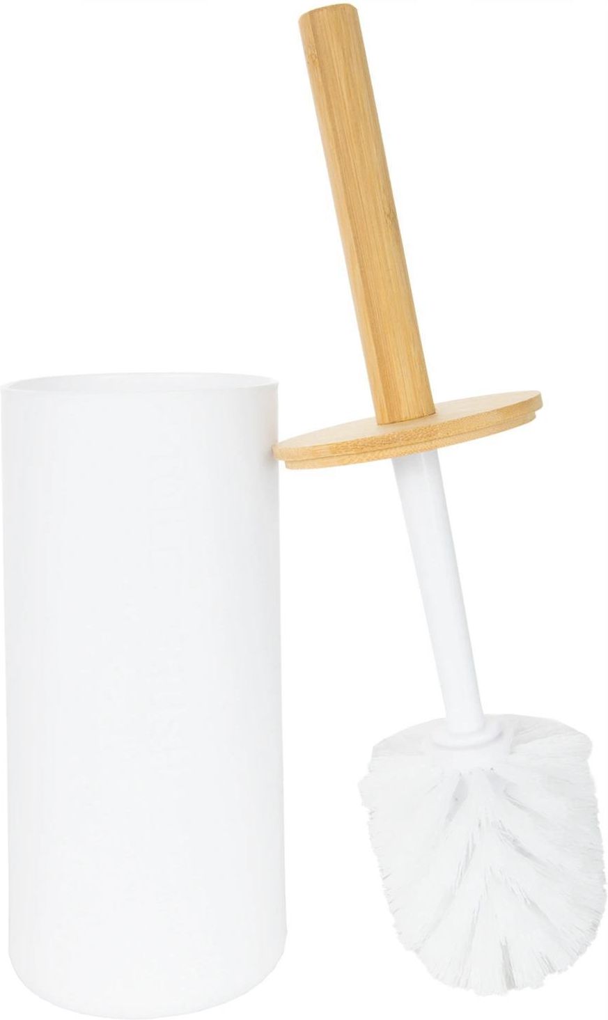Szczotka toaletowa biała drewniana ✅Szczotka do wc wykonana z tworzywa sztucznego i bambusa w białym kolorze, wymiary: 9x21,5 cm ✅ Najważniejsze cechy: Materiały: Tworzywo sztuczne Kolory: Biały Style: Nowoczesny Producent: Bathroom Solutions Numer katalogowy: 170456620 Za co pokochasz ❤️ nasz produkt: Uniwersalna szczotka toaletowa w pojemniku. Szczotka wyposażona w bambusową rączkę. Będzie praktycznym i eleganckim dodatkiem do łazienki. ⚠️ Kolory produktów widoczne na zdjęciach mogą się nieznacznie różnić od rzeczywistych, wynika to z indywidualnych ustawień ekranu na którym przeglądasz galerię produktu. ⚠️ ✅ Wymiary produktu: Średnica: 9 cm Wysokość: 21,5 cm ✅ Wymiary opakowania: szerokość opakowania: 15 cm wysokość opakowania: 25 cm głębokość opakowania: 15 cm