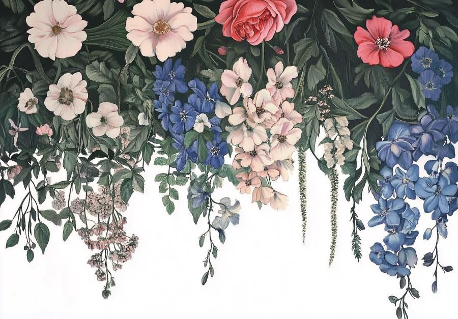 Fototapeta Wiszące Liście i Kwiaty – subtelna natura i romantyzm w Twojej sypialni Stwórz przytulną i elegancką przestrzeń do wypoczynku dzięki fototapecie z motywem wiszących liści i kwiatów. Delikatna roślinność w spokojnej, harmonijnej kompozycji wprowadza do wnętrza atmosferę lekkości, natury i …