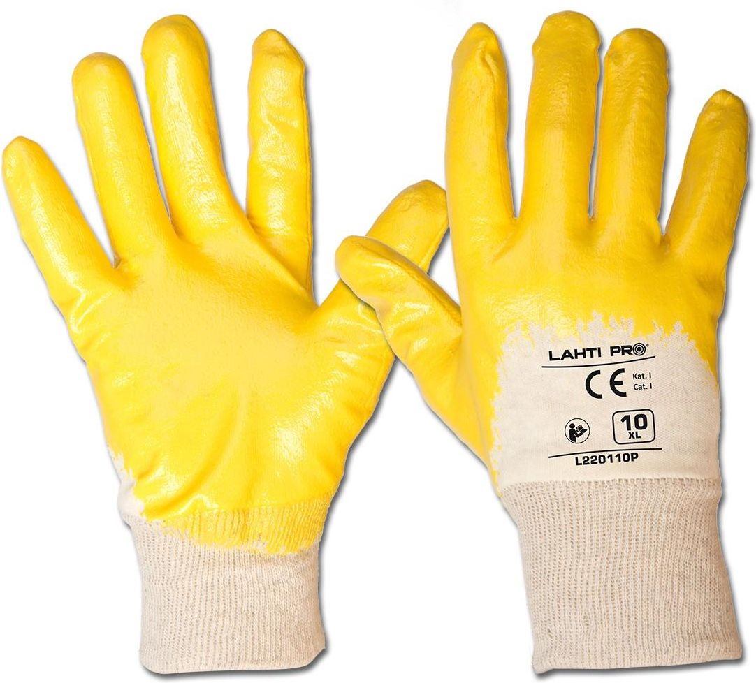 MATERIAŁ: Bawełna, nitryl Powlekane nitrylem na części chwytnej i połowie części wierzchniej Podwyższona odporność na smary i oleje 12 par w opakowaniu NORMA: EN ISO 21420 Pliki: l220108w.pdf curves.pdf Parametry: Opakowanie: worek Rozmiar: 9 - L Marka: LAHTI PRO