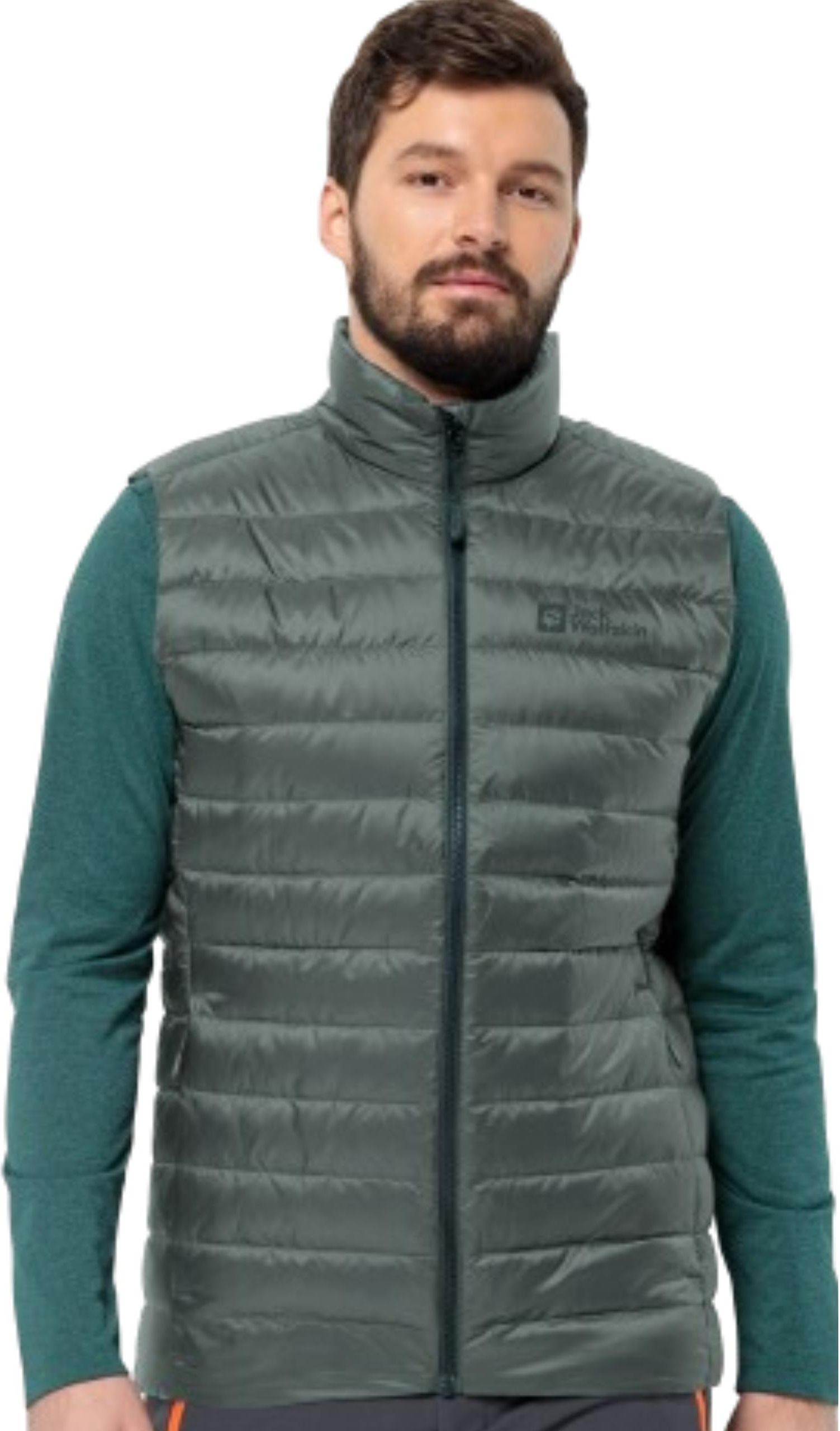 JACK WOLFSKIN BEZRĘKAWNIK Nasz ekspert marki JACK WOLFSKIN w ATLETA24 podkreśla najlepsze opinie o produkcie: lekka kamizelka izolująca z puchowym wypełnieniem o sprężystości 700 cuin puch z certyfikatem RDS wiatroszczelność, najwyższy stopień nienasiąkliwości i oddychalność 2 kieszenie na biodrach systemowy zamek błyskawiczny Opis produktu: Kamizelka PILVI DOWN VEST urzeka nowoczesnym wyglądem z wąskimi komorami oraz materiałem wierzchnim TEXASHIELD PRO REUSED / RECYCLED RIPSTOP 20D. Samo wypełnienie z naturalnego puchu 700 zapewnia przyjemne ocieplenie. Kurtka stanowi więc wyjątkowo ciepłą warstwę, którą można założyć pod kurtkę hardshell. Możesz ją nosić jako nowoczesny element ubioru na jesień lub ciepłe dopełnienie strojów do zimowych aktywności sportowych. O marce JACK WOLFSKIN: Firma Jack Wolfskin została założona we Frankfurcie nad Menem w 1981 roku. Jack Wolfskin jest znaczącym niemieckim producentem odzieży i sprzętu outdoorowego, rozpoznawalnym na całym świecie. To aktualnie jeden z największych dostawców specjalistycznych produktów outdoorowych. W ofercie firmy znajdziemy m. in.: odzież górską i wypoczynkową, obuwie, plecaki, śpiwory i namioty. Marka cieszy się uznaniem i ogromną popularnością! Ubrania i akcesoria Jack Wolfskin to jakość, innowacyjne rozwiązania i modny styl!!!