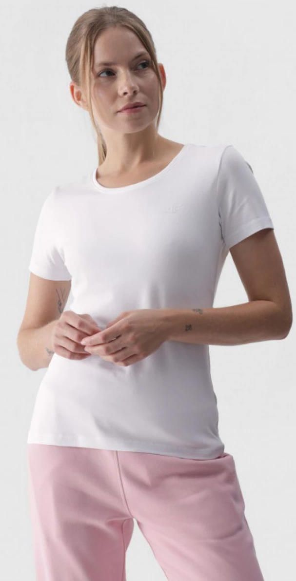 Damski t-shirt basic 4F 4FWMM00TTSHF1845 - biały Nowe Skalmierzyce
