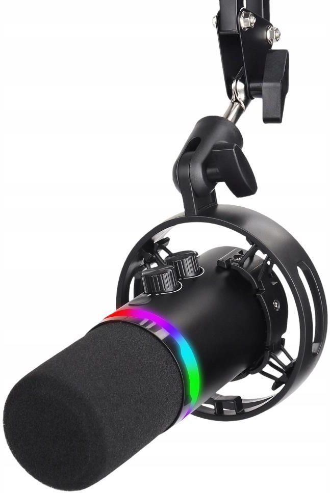 Redragon SOLARA GM307 – dynamiczny mikrofon dla graczy i twórców GM307 Redragon SOLARA GM307 to profesjonalny mikrofon dynamiczny o jednokierunkowej charakterystyce (kardioidalnej), zaprojektowany z myślą o streamerach, graczach i twórcach treści. Łączy nowoczesny design z solidną konstrukcją i efektownym podświetleniem RGB z 9 trybami, które dodają stylu każdemu stanowisku. Mikrofon oferuje podwójne połączenie – USB oraz XLR – co zapewnia kompatybilność z komputerami i profesjonalnymi interfejsami audio. Wyposażony w ramię mikrofonowe, pokrętło do regulacji głośności i port 3.5 mm do monitoringu w czasie rzeczywistym, gwarantuje wygodę i pełną kontrolę nad dźwiękiem. SOLARA GM307 dostarcza ciepłe, gładkie brzmienie bez niepożądanych szumów, idealne do nagrań głosu i transmisji na żywo. Czułość mikrofonu wynosi -52dB±3dB, a pasmo przenoszenia mieści się w zakresie 80 Hz – 15 kHz, z próbkowaniem 48 kHz i rozdzielczością 16-bitową. Dzięki precyzyjnej regulacji wbudowanym pokrętłem, użytkownik może łatwo zarządzać poziomem mikrofonu oraz odsłuchem. Podwójne połączenie i pełna kompatybilność SOLARA GM307 oferuje zarówno klasyczne połączenie XLR, jak i wygodne USB-C, co czyni go idealnym rozwiązaniem zarówno dla profesjonalnych interfejsów, jak i komputerów bez dodatkowego sprzętu. Dzięki temu sprawdzi się w domowym studiu, podczas transmisji live czy wideokonferencji. Dwuzakresowe złącza gwarantują elastyczność i wygodę pracy w różnych środowiskach. Dodatkowo port 3.5 mm umożliwia bieżący monitoring nagrywanego dźwięku. Specyfikacja Przeznaczenie: Studio / Gaming Łączność: Przewodowa Kierunkowość: Kardioidalna Złącze: XLR - 1 szt. / USB-C - 1 szt. / Minijack 3,5 mm - 1 szt. (do odsłuchu) Pasmo przenoszenia: 80 - 15000 Hz Czułość: -52 dB Próbkowanie: 48 kHz / 16 bit Zasilanie: Zewnętrzne Sposób mocowania: Statyw / Ramię Długość przewodu: 2,2 m Kolor: Czarny Wysokość: 174 mm Szerokość: 130 mm Głębokość: 56 mm Waga: 731 g Dodatkowe informacje: Podświetlenie 9-kolorowe / Pokrętło do regulacji głośności Dołączone akcesoria: Ramię mikrofonowe / kabel USB / kabel XLR / Naklejka Redragon