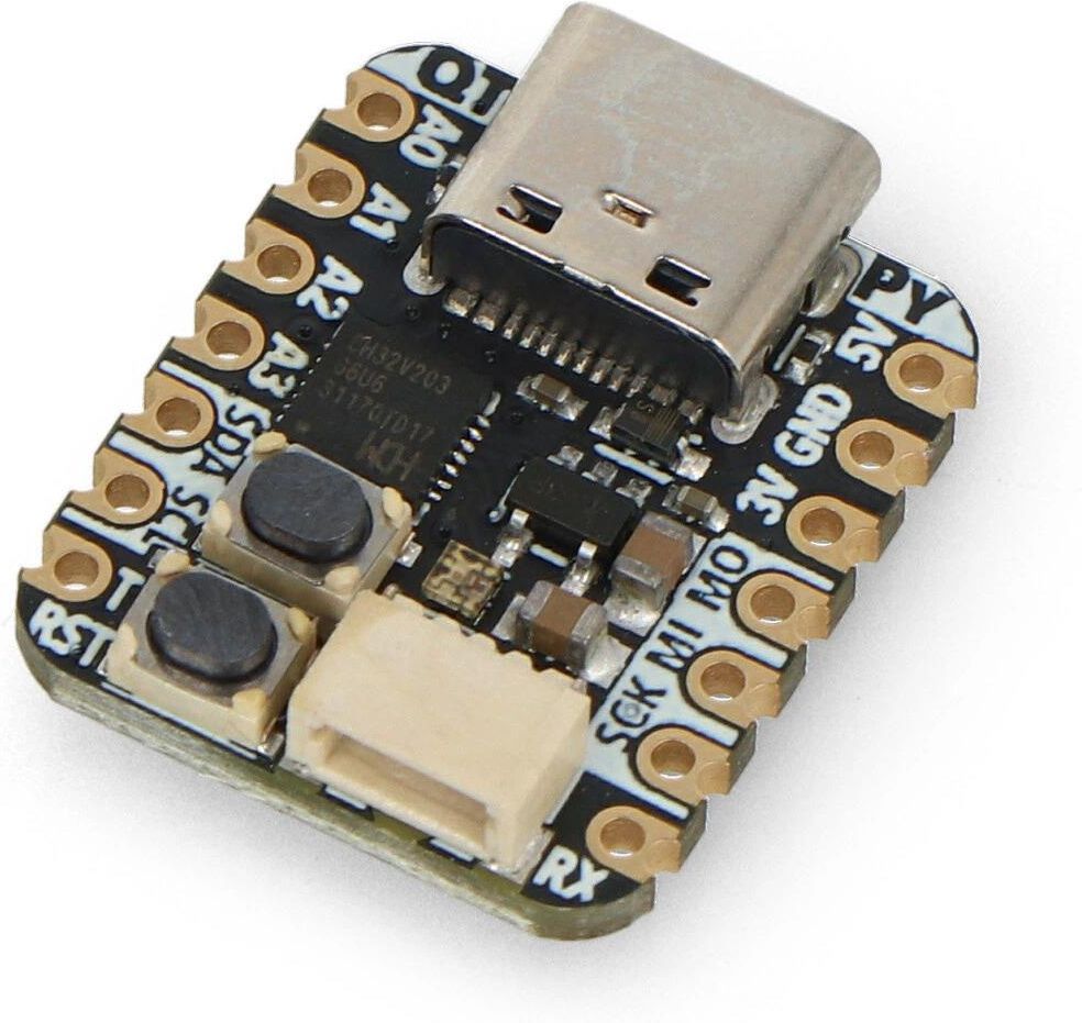 Adafruit QT Py CH32V203 to kompaktowa płytka rozwojowa oparta na procesorze RISC‑V CH32V203G6 o taktowaniu do 144 MHz, z 10 kB pamięci SRAM, 32 kB Flash i dodatkowym 224 kB Flashem XIP. Wyposażona w złącze USB typu C, port STEMMA QT, wbudowaną diodę NeoPixel, przyciski Reset i Bootloader - idealna dla zaawansowanych hobbystów pracujących z Makefile, Git i konfiguracjami.