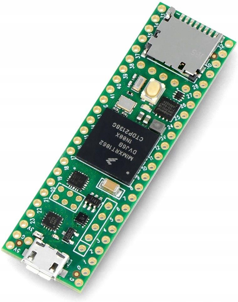 Płytka rozwojowa Teensy 4.1 to zaawansowana wersja swojego poprzednika, Teensy 4.0, wyposażona w procesor ARM Cortex-M7 o częstotliwości 600 MHz. Dzięki temu Teensy oferuje znakomitą wydajność obliczeniową, umożliwiającą realizację skomplikowanych projektów elektronicznych i obliczeniowych. Teensy 4.1 posiada ten sam procesor co Teensy 4.0, ale oferuje znacznie większe możliwości w zakresie wejścia/wyjścia. Wersja 4.1 została wzbogacona o dodatkowe piny, które umożliwiają lepsze połączenia i większą elastyczność w projektowaniu układów. Dodatkowo, pamięć flash tej płytki została zwiększona czterokrotnie w porównaniu do wersji 4.0, co pozwala na przechowywanie większej ilości kodu i danych. Wersja ta posiada również dwa porty, które umożliwiają rozszerzenie pamięci za pomocą zewnętrznych modułów, co jest szczególnie przydatne w projektach wymagających dużych zasobów pamięciowych. Warto zauważyć, że dla tej wersji nie są dołączone złącza goldpin, co pozwala na większą swobodę w konfiguracji i dostosowaniu płytki do własnych potrzeb. Główne zalety Teensy 4.1 Slot dla kart microSD Zarządzanie wł. / wył. zasilania 32 kanały DMA ogólnego przeznaczenia Przyspieszenie kryptograficzne Generator liczb losowych RTC dla daty/godziny Rozszerzenie pamięci QSPI, miejsca na 2 dodatkowe układy RAM lub Flash Programowalne FlexIO Specyfikacja Teensy 4.1 Wymiary: 3.6x 6,1 cm x 1,78 cm. Całkowita liczba pinów: 55 porty SPI: 3 porty I2C: 3 Ilość pinów wejść analogowych: 18 Ilość portów szeregowych: 8 Cyfrowy port audio I2S/TDM: 2 Cyfrowy port S/PDIF: 1 Magistrale CAN: 3 (1 z CAN FD) Natywny port karty SD SDIO: 1 (4-bitowy). W przesyłce od nas znajdziesz Oryginalne opakowanie, a w jego środku: Teensy 4.1 Kartę MicroSD 32GB Kingston