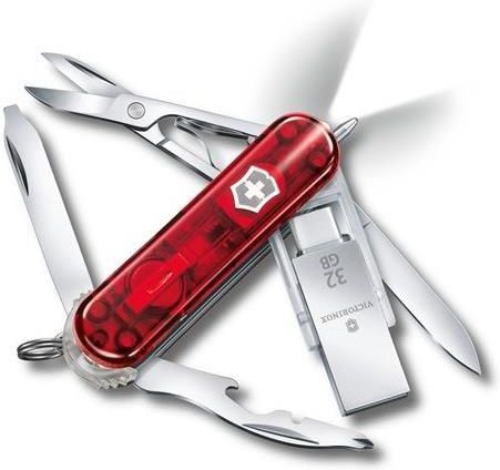 VICTORINOX - Scyzoryk Midnite Manager@work - 32GB - Czerwony transparentny Scyzoryk Victorinox Midnite Manager@work to nie tylko tradycyjne narzędzie wielofunkcyjne, ale także praktyczny nośnik danych. W kolorze czerwonym transparentnym, ten innowacyjny scyzoryk zawiera obrotowy i wymienny port USB 3.0/3.1 o pojemności 32 GB, idealny do przechowywania ważnych plików podczas podróży, w biurze czy w domu. Niezawodny towarzysz na cyfrowej drodze każdego dnia. Cechy 1. Pamięć USB 32 GB 2. Dioda LED 3. Długopis ciśnieniowy 4. Ostrze, małe 5. Nożyce 6. Pilnik do paznokci 7. Śrubokręt 2,5 mm 8. Otwieracz do butelek 9. Wkrętak krzyżakowy 0/1, magnetyczny 10. Ściągacz izolacji 11. Kółko na klucze