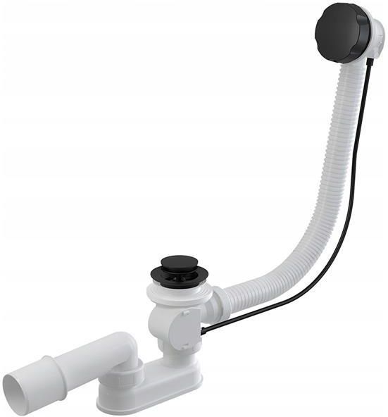 Syfon automatyczny z przelewem Typ syfonu: wannowy przelewowo-odpływowy Materiał: polipylen Wykończenie: czarny matowy syfon z ruchomym kolanem elastyczny wąż przelewowy automatyczny korek Długość: 57 cm odporny termicznie i chemicznie, formowane uszczelnienie W zestawie: korpus syfonu z przelewem, …