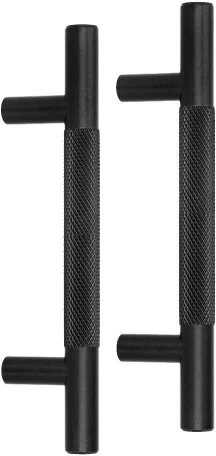 Uchwyt meblowy w kolorze czarnym. Nadadzą szafie na odzież, szufladzie komody czy szafce nowy styl. Odpowiednie do płyt o grubości 16 mm. W zestawie wkręty.