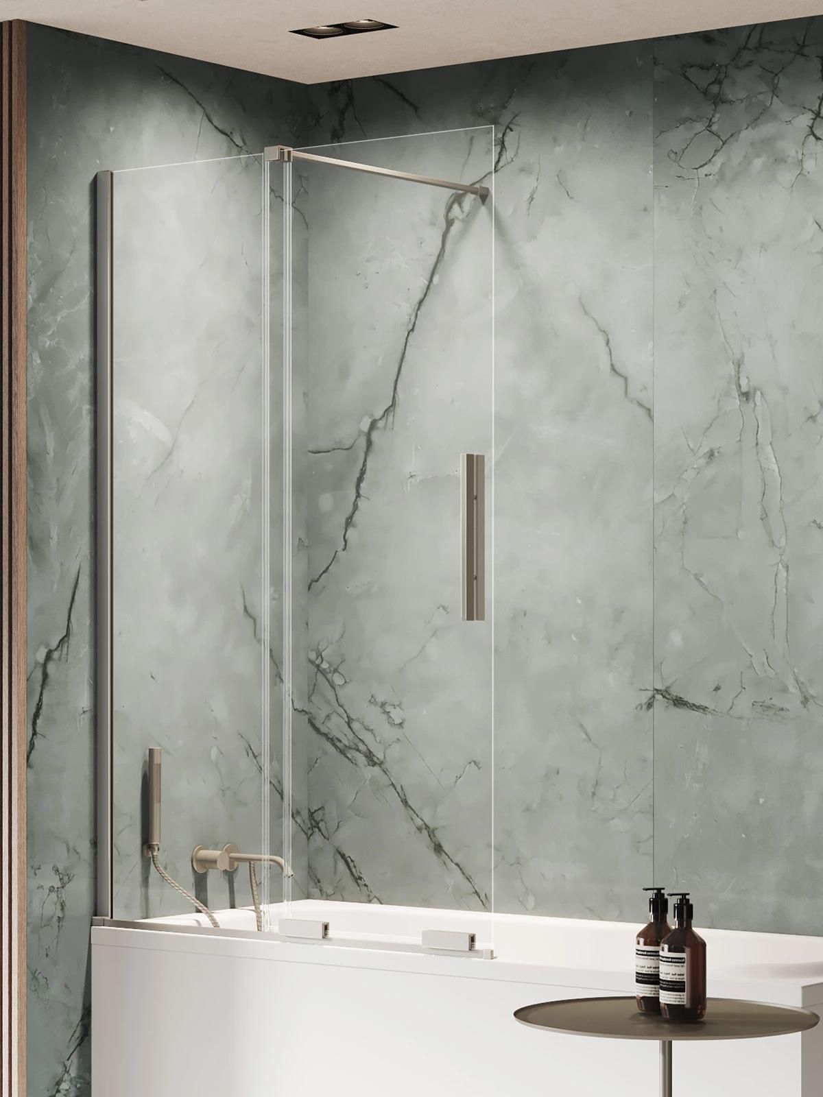 Parawan nawannowy SMART GUNMETAL BRUSHED EXK-7963 – Szczotkowanie, szkło 8 mm Estetyka spotyka funkcjonalność Model SMART GUNMETAL BRUSHED (140x150) jako parawan nawannowy oferuje elegancki wygląd i nowoczesne linie, które podkreślają charakter łazienki. Kolor: Gunmetal. Wykończenie: Szczotkowanie. Grubość szkła: 8 mm. Innowacyjne rozwiązania Dzięki zastosowanej powłoce Active Shield 2.0, szkło zyskuje odporność na zabrudzenia i jest łatwe w pielęgnacji. Dopasowanie do wnętrza Ten wariant o wymiarze 140x150 pasuje do wielu aranżacji łazienkowych. Model Smart Gunmetal Brushed wyróżnia się eleganckimi detalami w kolorze gunmetal z wykończeniem szczotkowanym. Parawany kąpielowe mają 8mm bezpieczną, hartowaną szybę z powłoką Active Shield 2.0. Produkty z tej serii posiadają tylko dolny system przesuwny oraz punktową prowadnicę u góry. Kolekcja objęta 7-letnią gwarancją. Dostępność produktu również jako na wymiar. Zamontuj raz – korzystaj przez lata bez kompromisów.