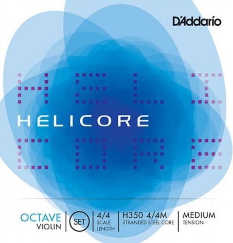 D’Addario Helicore Octave H350 4/4M – struny do skrzypiecKomplet Helicore Octave został zaprojektowany dla muzyków strojących instrument o oktawę niżej, co pozwoli zwiększyć możliwości tonalne i stylistyczne instrumentu. Struny Helicore Octave są znacznie grubsze niż tradycyjne struny skrzypcowe, co warto mieć na uwadze podczas ich zakładania.Struny D’Addario Helicore posiadają wielowłóknowy stalowy rdzeń, zapewniający im czyste i ciepłe brzmienie. Muzycy reprezentujący różne style muzyczne cenią ich szybką reakcję na ruchy smyczka i doskonałą stabilność stroju. Struny Helicore wybierane są przez profesjonalistów, studentów i średniozaawansowanych skrzypków oczekujących ponadprzeciętnej jakości i brzmienia.Najważniejsze cechy: Komplet strun do skrzypiec Zaprojektowane do strojenia o oktawę niżej Przeznaczenie: skrzypce Naciąg: średni (Medium Tension) Rozmiar: 4/4Struny: Struna E (H351 4/4M) – stalowy rdzeń, owijka aluminiowa (aluminium) Struna A (H352 4/4M) – stalowy rdzeń, owijka srebrna (silver) Struna D (H353 4/4M) – stalowy rdzeń, owijka wolframowo-srebrna (tungsten & silver) Struna G (H354 4/4M) – stalowy rdzeń, owijka wolframowo-srebrna (tungsten & silver)