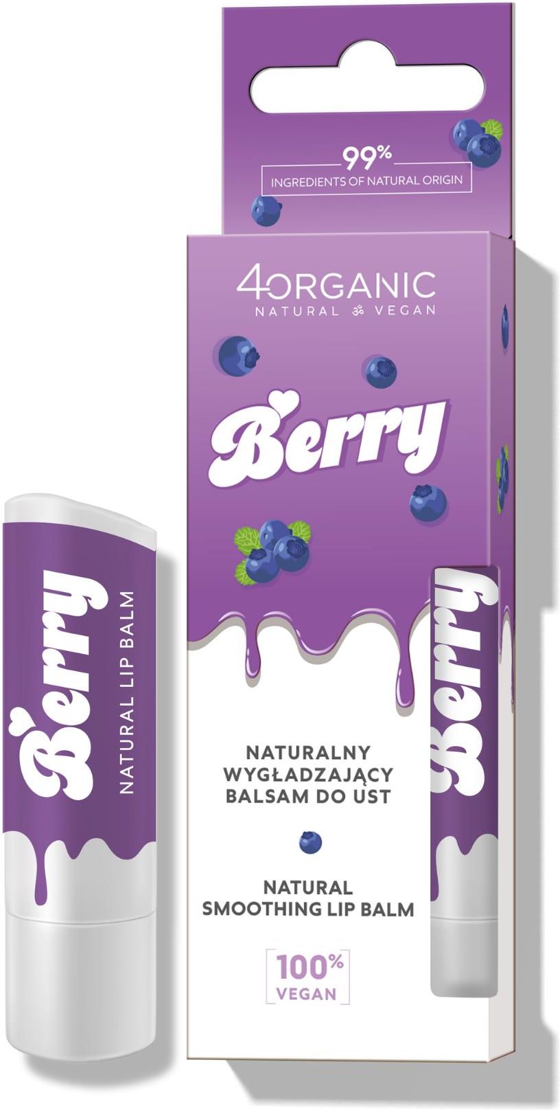 4Organic Naturalny Wygładzający Balsam Do Ust Berry Nowe