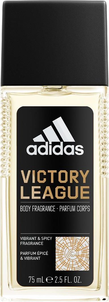 Zapachowy dezodorant do ciała dla mężczyzn adidas Victory League to intensywny, wyrazisty zapach inspirowany potęgą zespołu i siłą jednostki. Kompozycja łączy akcenty cytryny, woń skórki z zielonych owoców i akordy drzewno-piżmowe. Butelka została wyprodukowana w 25% ze szkła pochodzącego z recyklingu, a nakrętka – w 50% z plastiku pochodzącego z recyklingu. Produkt zawiera naturalny olejek eteryczny z kardamonu i mandarynki, zachwyca długotrwałym zapachem oraz ma wegańską formułę. 8783805874506