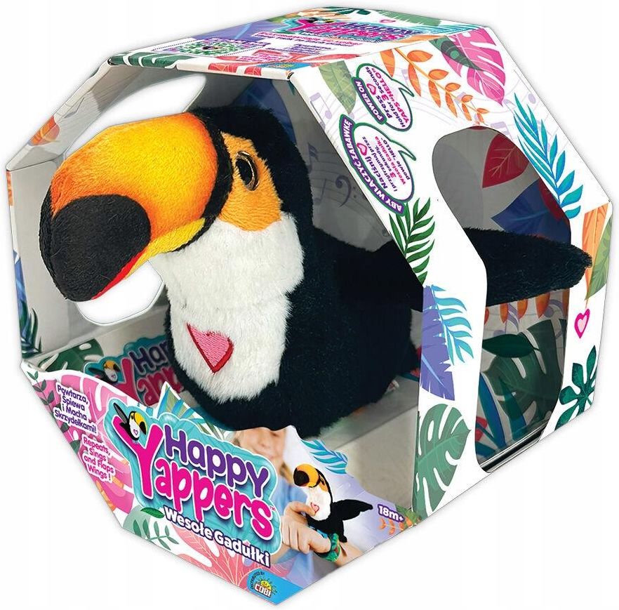 Tukan Happy Yappers – Interaktywny Ptaszek dla Maluchów Rozbudź wyobraźnię swojego dziecka z Tukanem Happy Yappers! Wyjątkowy, interaktywny ptaszek, który stanie się najlepszym przyjacielem każdego malucha. Czy Twoje dziecko marzy o zabawkach, które reagują na głos i śpiewają własne melodie? Teraz to możliwe dzięki Tukanowi, który uwielbia rozmawiać i powtarzać każde słowo. Interaktywna komunikacja: Tukan powtarza wypowiadane słowa, rozwijając zdolności językowe dziecka. Kolorowy design: Tropikalny wygląd oraz barwne skrzydła przyciągają uwagę i pobudzają zmysły wzroku. Mobilność i wygoda: Dzięki zapince na rękę, Tukan może towarzyszyć dziecku wszędzie, od domowego salonu po parkową alejkę. Ładowanie USB: Koniec z wymianą baterii – szybkie ładowanie zapewnia długie godziny zabawy. Wyobraź sobie radość na twarzy Twojego dziecka, gdy z uśmiechem odkrywa nowe dźwięki wydawane przez Tukana. Wystarczy jedno pogłaskanie, by usłyszeć wesołe ćwierkanie! Idealny towarzysz podczas rodzinnych spacerów, bez którego nie sposób się obejść. Każdy dzień to nowa przygoda, pełna śmiechu i wspólnej zabawy. Wykonany z miękkiego materiału, Tukan jest przyjemny w dotyku i bezpieczny nawet dla najmłodszych dzieci od 18 miesiąca życia. Jego kolorowy dziób i tropikalne barwy zachęcają do kreatywnej zabawy, a możliwość przypięcia go do plecaka czy gałęzi czyni z niego idealnego kompana na każdą okazję. FAQ Pytanie: Czy Tukan jest odpowiedni dla dzieci poniżej 18 miesięcy? Odpowiedź: Tukan Happy Yappers jest zalecany dla dzieci od 18 miesięcy, ze względu na interaktywne funkcje dostosowane do tego wieku. Pytanie: Jak długo trwa ładowanie zabawki? Odpowiedź: Zabawka ładowana jest przez kabel USB (dołączony w zestawie), a pełne naładowanie zajmuje około jednej godziny. Pytanie: Czy Tukan posiada inne funkcje poza powtarzaniem słów? Odpowiedź: Tak, oprócz powtarzania słów, Tukan macha skrzydełkami, ćwierka i śpiewa swoje melodyjki, co dodatkowo bawi i angażuje dziecko. Nie czekaj, dodaj Tukana Happy Yappers do koszyka i spraw, by każdy dzień Twojego dziecka był pełen radości i śmiechu!