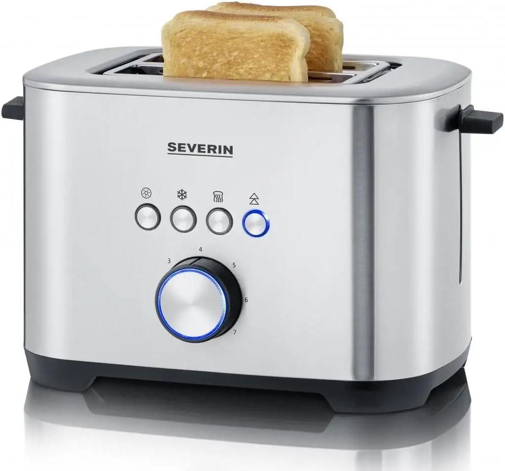 Severin AT 2620 Toster Severin AT 2620 to nieodłączny element każdej kuchni, który z pewnością zadowoli miłośników chrupiącego pieczywa. Dzięki temu urządzeniu przygotowanie pysznych tostów staje się szybkie i proste. Z eleganckim wyglądem i nowoczesnym designem, toster ten doskonale wpasuje się w każdą aranżację kuchenną. Oferując solidną konstrukcję, moc oraz różnorodne funkcje, ten model z pewnością spełni oczekiwania użytkowników ceniących sobie jakość i wygodę. Moc i funkcjonalność Jednym z kluczowych elementów, które warto rozważyć przy wyborze tostera, jest jego moc. Toster Severin AT 2620 ma moc 800 W, co pozwala na szybkie i efektywne opiekanie chleba. Taki parametr sprawia, że można przygotować smakowite tosty w zaledwie kilka minut. Urządzenie umożliwia równoczesne opiekanie dwóch kromek pieczywa, co jest szczególnie istotne, gdy w kuchni przebywa więcej osób i potrzebujemy szybko przygotować śniadanie lub przekąski dla rodziny. Regulacja opiekania Regulacja stopnia opiekania to istotna funkcjonalność, która wyróżnia ten model. Toster oferuje aż 7 poziomów regulacji, pozwalających na dostosowanie stopnia zarumienienia do indywidualnych preferencji. Bez względu na to, czy wolisz delikatnie zarumienione pieczywo, czy może mocno chrupiące tosty, ten toster z pewnością spełni Twoje wymagania. Elektroniczna kontrola zarumienienia zapewnia precyzyjne wyniki, dzięki czemu można uzyskać idealnie upieczone pieczywo za każdym razem. Konstrukcja i design Wymiary urządzenia (wysokość: 19,5 cm, szerokość: 31 cm, głębokość: 19 cm) sprawiają, że jest ono kompaktowe i bez trudu zmieści się na kuchennym blacie, oferując wystarczająco dużo miejsca na pieczywo. Obudowa wykonana ze stali nierdzewnej nie tylko świetnie wygląda, ale również zapewnia trwałość i łatwość w utrzymaniu czystości. Dodatkowo, długość kabla zasilającego pozwala na wygodne użytkowanie, a schowek na kabel ułatwia przechowywanie oraz zachowanie porządku w kuchni. Dodatkowe funkcje Model Severin AT 2620 oferuje także wiele dodatkowych funkcji, które zwiększają jego wszechstronność i komfort użytkowania. Te cechy są istotne, ponieważ umożliwiają dostosowanie urządzenia do różnych potrzeb, co czyni je bardziej funkcjonalnym w codziennym użytkowaniu. Wśród nich znajdują się: Funkcja podgrzewania – umożliwia szybkie przywrócenie odpowiedniej temperatury dla wcześniej przygotowanych tostów, Opcja opiekania tylko jednej strony – sprawdzi się idealnie przy podgrzewaniu bajgli lub innych rodzajów pieczywa, Funkcja odmrażania – pozwala na wygodne korzystanie z zamrożonego pieczywa, Duże otwory – umożliwiają opiekanie różnych rodzajów pieczywa, w tym grubszych kromek, Wyjmowana tacka na okruchy – ułatwia utrzymanie tostera w czystości. Toster Severin AT 2620 to praktyczne urządzenie do codziennego użytku, które pozwala na szybkie i równomierne opiekanie chleba, zachowując indywidualne preferencje dotyczące stopnia zarumienienia. Dzięki solidnej konstrukcji oraz różnorodnym funkcjom, korzystanie z tego modelu będzie wygodne i efektywne w każdej kuchni.