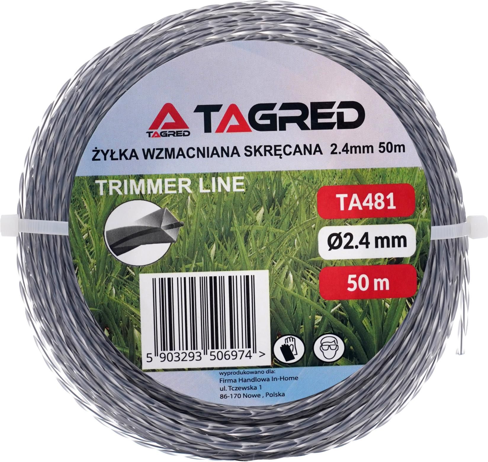 Tagred Żyłka Tnąca Do Kosy Spalinowej Podkaszarki Skręcana Kwadrat 2,4mm x 50m Szara Wzmocniona TA481 Nowe