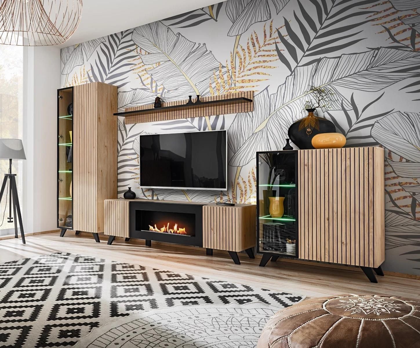Meblościanka LIAM LED hickory jackson z biokominkiem