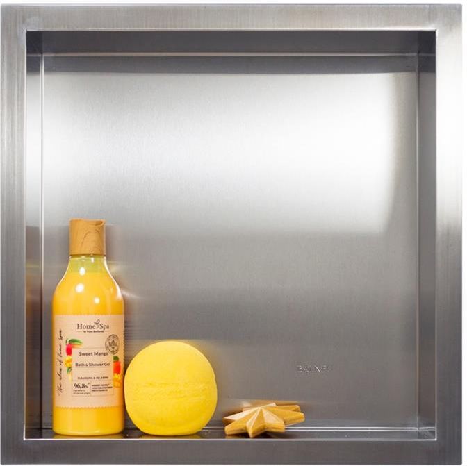 BALNEO PÓŁKA WNĘKOWA WALL BOX ONE 30x30x10 INOX Półki wnękowe – WALL-BOX ONE Inox 30x30cm Półki wnękowe WALL-BOX ONE pozwalają uporządkować przestrzeń w łazience i nadają jej nowoczesnego designu. Niezależnie od tego czy w kolorze ponadczasowej eleganckiej stali nierdzewnej, subtelnej złamanej bieli, czy też w wyjątkowej stylowej czerni – uzyska się efekt nowoczesności i schludności. Na łatwo dostępnych półkach można ustawić kosmetyki, perfumy a w kabinie prysznicowej – szampony, żele i inne artykuły kąpielowe. Półki linii WALL-BOX ONE można także wykorzystać aranżując przestrzeń np. w sypialni w miejscu szafek nocnych – na podręczne drobiazgi, kuchni – na przyprawy, czy jako wnęki na elementy dekoracyjne w salonie. Półki wnękowe czarne i ze stali INOX szczególnie dobrze wkomponowują się w surowe, wyrafinowane, pełne szarości pomieszczenia i wnętrza industrialne typu współczesne lofty. Wykonany z wysokiej jakości stali nierdzewnej WALL-BOX ONE nie jest narażony na korozję związaną z wodą i wysoką wilgotnością panującą w łazience czy kuchni. Dwie głębokości montażu (7 i 10 cm) pozwalają na dobranie odpowiedniego modelu i dostosowanie do możliwości instalacyjnych. WALL-BOX ONE można zamontować w większości ścian lub wnęk. Kołnierz otaczający WALL-BOX ONE jest dodatkową ozdobą, ale także ukrywa przycięte krawędzie glazury i stanowi elegancką ramę. WALL- BOX ONE często nazywane są następcami koszyków łazienkowych, które zazwyczaj wykonane są z materiałów niskiej jakości, są mało estetyczne, ograniczają miejsce w kabinie oraz bardzo często korodują. WALL-BOX ONE to również alternatywa dla półek wnękowych wykonywanych z płyt gipsowo-kartonowych. Płyty g/k nie są materiałem dedykowanym do wykonywania półek wnękowych a w szczególności tam gdzie mamy do czynienia z bardzo dużą wilgotnością (np: kabina prysznicowa). Półki wykonane z płyt g/k nie są wodoszczelne, co może powodować przeciekanie wody do wnętrza ściany poprzez wypłukujące się fugi. Wykonywanie tego typu półek jest bardzo kosztowne, problematyczne oraz pracochłonne. WALL-BOX ONE to szybkie w instalacji i w pełni wodoszczelne półki wnękowe. Półki wnękowe WALL-BOX ONE – Zalety Wykonane z wysokiej jakości stali nierdzewnej Nowoczesny wygląd Wodoszczelne Dostępne w kilku wersjach kolorystycznych, rozmiarach oraz głębokościach Łatwe i szybkie w montażu Uniwersalne zastosowanie – pod prysznicem, w łazience, salonie czy przedpokoju, itp. Wygodne w użytkowaniu Wpuszczane w ścianę – Nie zabierają miejsca w kabinie. Łatwe do utrzymania w czystości
