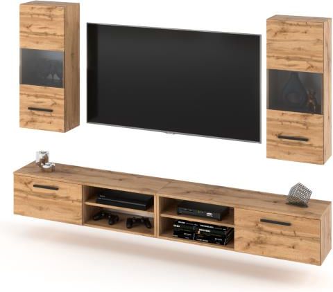 MEBLOŚCIANKA BLANKA FRONTY: FRONTY: Wotan/ KORPUS Wotan SPECYFIKACJA – w witrynach szkło czarne przezroczyste – uchwyty czarne, matowe, plastikowe, rozstaw 128 mm – korpus wykonany z płyty laminowanej grubości 16 mm o zwiększonej odporności na zadrapania – fronty wykonane z płyty MDF lakierowanej na wysoki połysk lub laminowanej o grubości 16 mm. SKŁAD ZESTAWU W skład zestawu wchodzą dwie wiszące rtv i dwie wiszące witryny oraz wszystkie akcesoria i instrukcja do montażu. WYMIARY RTV ma 120 cm szerokości / 35 cm wysokości / 40 cm głębokości Witryna ma 40 cm szerokości / 100 cm wysokości / 30 cm głębokości Waga 100 kg Wymiary 240 × 40 × 120 cm Liczba drzwi 4 Montaż meble do samodzielnego montażu Stan Nowy Liczba elementów w zestawie 4