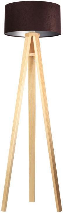 Minimalistyczna lampa stojąca HOME 40 w stylu skandynawskim Lampa stojąca HOME 40 to produkt polski, który powstał jako uzupełnienie oświetlenia znajdującego się w salonie, sypialni, czy też w biurze. Lampa na trójnogu nie tylko zapewni źródło światła, ale sama w sobie będzie również pełnić funkcję dekoracyjną we wnętrzu. Ta lampa podłogowa ma podstawę skonstruowaną z naturalnego drewna sosnowego, dzięki czemu jest ona mocna i stabilna. Naturalna kolorystyka drewna sprawia, że lampa doskonale wkomponuje się w skandynawskie i minimalistyczne aranżacje. Lampa posiada wygodny włącznik nożny, dzięki któremu łatwo i szybko zapalimy światło. Opisywana lampa stojąca ma klasyczny abażur w kształcie walca zrobiony z tworzywa PCV pokrytego welurową tkaniną o brązowej barwie. Wnętrze lampy ma srebrny kolor. Zaletą lampy stojącej HOME 40 jest jej duża odporność na promieniowanie UV, dzięki czemu nie traci ona swojego koloru nawet po długim czasie użytkowania. Do lampy pasują żarówki E27 o maksymalnej mocy 60 Watt - można także zastosować żarówki LED. Lampa sprzedawana jest bez żarówki.Cechy produktuprodukt polski,nowoczesne wzornictwo,abażur wykonany z tkaniny welurowej/aksamitnej na tworzywie sztucznym,wnętrze lampy w srebrnym kolorze,podstawa lampy z naturalnego drewna sosnowego,do lampy pasuje żarówka E27 max. 60 W,brak żarówki w zestawie,przewód bezbarwny o długości 3,5m z włącznikiem nożnym,w swojej ofercie posiadamy szeroki wybór mebli pozwalających na kompleksowe wyposażenie mieszkania