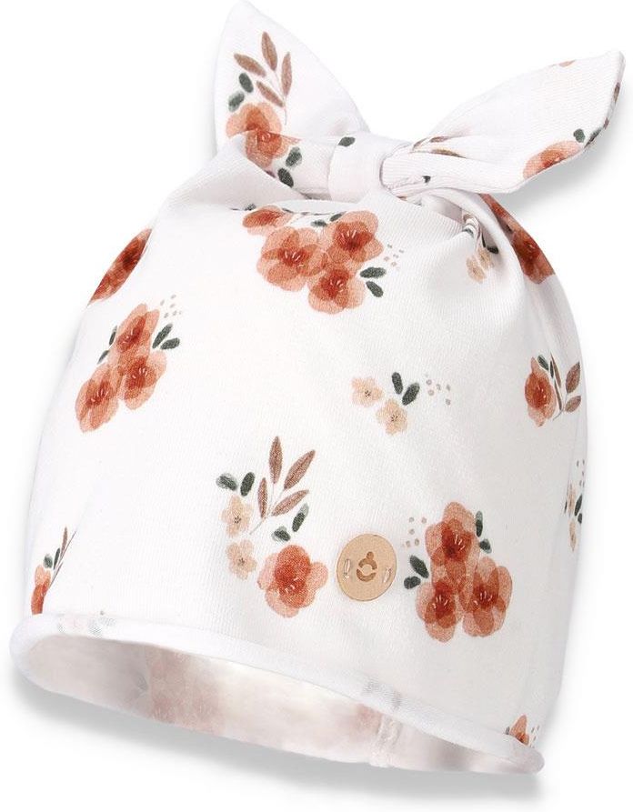 Broel ELVIRA czapka niemowlęca z kokardką kwiaty ecru Nowogard