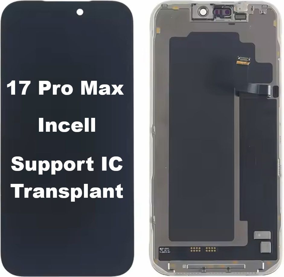 Wyświetlacz LCD ekran dotyk do Apple iPhone 17 Pro Max (Incell) (Removable IC) Kompletny moduł ekranu z panelem dotykowym, ramką i mocowaniami czujników oraz możliwością wymiany układu IC Kompatybilność iPhone 17 Pro Max (6.9") A3257 / A3525 / A3526 / A3527 Rodzaj matrycy: LCD Incell Klasa jakościowa: HQ A+ (Zamiennik) Wersja: Removable IC / Support IC Transplant - łatwo usuwalny układ IC z możliwością wymiany na macierzysty Stan: Fabrycznie nowy Zestaw zawiera Matryca wyświetlacza z panelem dotykowym Siateczka ochronna głośnika rozmów Plastikowe ramki pozycjonujące sensory i kamerę Fabryczne folie ochronne Kartonowe pudełko Opis i cechy produktu Kompletny wyświetlacz z panelem dotykowym (digitizerem) Fabrycznie zamontowane komponenty: ramka montażowa, maskownica głośnika, plastikowe mocowania czujników i kamery Posiada folie ochronne oraz dedykowane twarde pudełko z blistrem lub pianką dla zabezpieczenia całego modułu i taśm flex Wyświetlacze są fabrycznie testowane pod kątem prawidłowego wyświetlania obrazu oraz czułości dotyku Support IC Transplant - łatwo usuwalny układ IC z możliwością wymiany na macierzysty w celu usunięcia komunikatu o nieznanej części (jest to opcjonalny zabieg i bez tego ekran również funkcjonuje prawidłowo)