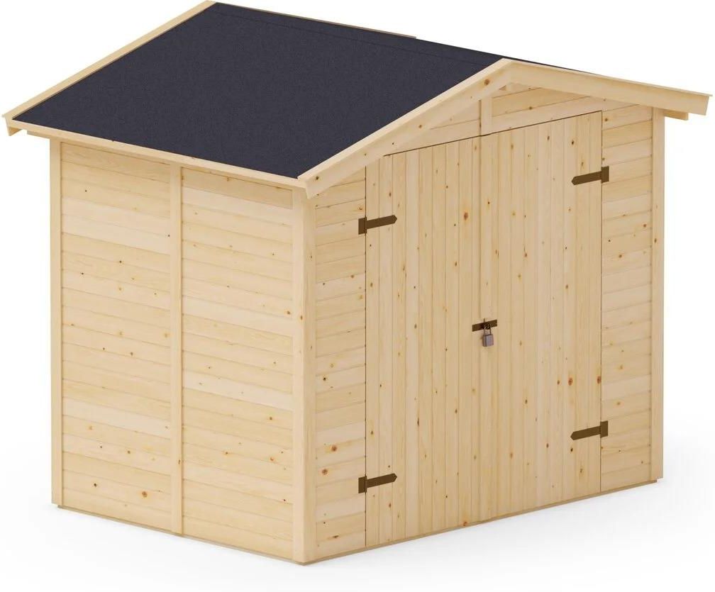 Domek narzędziowy z drewna nordyckiego o wymiarach 240x170 cm i wysokości 227 cm w kolorze naturalnego drewna Domek narzędziowy Upyard 1,7 × 2,4 m — Twój niezawodny schowek w ogrodzie Potrzebujesz miejsca na kosiarkę, narzędzia albo rowery? Ten drewniany domek Upyard to sprytne i przyjazne dla środowiska rozwiązanie, które uporządkuje Twój ogród i doda mu naturalnego uroku. Ekologia i trwałość Wykonany z solidnego świerku skandynawskiego, który posiada certyfikat FSC, gwarantuje nie tylko długą żywotność, ale i odpowiedzialne źródło pochodzenia drewna. 📏 Idealny rozmiar Zewnętrzne wymiary 170 × 244 cm i przestrzeń użytkowa niemal 4 m² pomieszczą wszystkie niezbędne sprzęty. Ściany o grubości 10,5 mm i stabilny dach z deskami tej samej grubości zapewniają ochronę zawartości w każdych warunkach. 🚪 Funkcjonalne detale Podwójne drzwi umożliwiają wygodne wnoszenie większych rzeczy i można je zabezpieczyć kłódką. Stałe okno wpuszcza do wnętrza światło, co ułatwia pracę wewnątrz. ✅ Dla jeszcze lepszej ochrony wystarczy impregnować drewno — to gwarancja, że domek będzie służył niezawodnie przez długi czas. Wszystko w zestawie Impregnowana podłoga i dach z pokryciem bitumicznym są już dołączone — nie musisz się martwić o dodatkowe elementy. Obciążenie śniegowe do 70 kg/m² sprawia, że domek sprawdzi się nawet zimą. 🌲 Naturalny wygląd Surowe drewno możesz zaimpregnować według własnego gustu — domek świetnie komponuje się z każdym stylem ogrodu i tworzy przytulną przestrzeń do przechowywania. Najważniejsze cechy domku narzędziowego Upyard 1,7 × 2,4 m ✔️ Wymiary zewnętrzne: 170 × 244 cm — praktyczny rozmiar do każdego ogrodu ✔️ Materiał: wysokogatunkowy świerk skandynawski z certyfikatem FSC ✔️ Grubość ścian: 10,5 mm — lekka, ale wytrzymała konstrukcja ✔️ Powierzchnia użytkowa: 3,95 m² — idealna na narzędzia, sprzęt i rowery ✔️ Podłoga i dach w komplecie: podłoga impregnowana, dach z pokryciem bitumicznym ✔️ Drzwi: podwójne, zamykane na kłódkę ✔️ Okno: 1 stałe — wpuszcza światło dzienne ✔️ Odporność na śnieg: do 70 kg/m² — sprawdzi się cały rok ✔️ Kolor: naturalne drewno — do własnej impregnacji ✔️ Gotowy zestaw — łatwy montaż i solidna ochrona przechowywanych rzeczy!