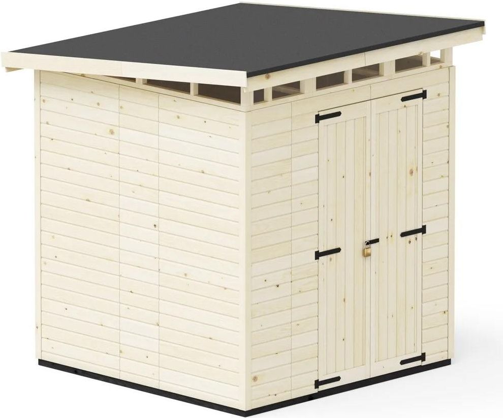 Domek narzędziowy z drewna nordyckiego o wymiarach 203x203 cm i wysokości 227 cm Domek narzędziowy 2×2 m Upyard Strongbox XL — praktyczny i ekologiczny Szukasz niezawodnego miejsca na narzędzia, sprzęt ogrodowy lub rowery? Drewniana szopka Upyard Strongbox XL to doskonały wybór dla każdego, kto ceni naturalne materiały i solidne wykonanie. ✅ Przemyślana konstrukcja — zewnętrzne wymiary 203 × 203 cm i powierzchnia użytkowa 3,68 m² zapewnią sporo miejsca do przechowywania. Grube, 15-milimetrowe ściany i dach z drewna nordyckiego (świerk skandynawski) gwarantują trwałość i estetyczny wygląd przez lata. ✅ Kompletny zestaw — w pakiecie masz wszystko, co potrzebne: impregnowaną podłogę, dach z pokryciem bitumicznym i solidną bazę. Nie musisz nic dokupywać! ✅ Bezpieczny i funkcjonalny — podwójne drzwi z zamkiem umożliwiają łatwy dostęp, a stałe okno z poliwęglanu doświetla wnętrze. Kalenica na wysokości 1,9 m i wysokość ściany 1,85 m dają komfort użytkowania. ✅ Odporność na pogodę — obciążenie śniegiem do 70 kg/m² i certyfikat FSC potwierdzają trwałość i zrównoważone pochodzenie drewna. Postaw na praktyczne i ekologiczne rozwiązanie — wybierz domek narzędziowy Upyard Strongbox XL i zadbaj o porządek w swoim ogrodzie! Najważniejsze cechy domku narzędziowego Upyard Strongbox XL ✔️ Wymiary zewnętrzne: 203 × 203 cm (2×2 m) ✔️ Materiał: Drewno nordyckie (świerk skandynawski), certyfikat FSC ✔️ Grubość ścian, dachu i podłogi: 15 mm — trwała, solidna konstrukcja ✔️ Powierzchnia użytkowa: 3,68 m² ✔️ Podłoga i dach w zestawie: impregnowana podłoga + dach z pokryciem bitumicznym ✔️ Drzwi: podwójne, zamykane ✔️ Okno: stałe, z poliwęglanu ✔️ Obciążenie śniegiem: do 70 kg/m² ✔️ Kolor: naturalny (bez impregnacji) — możesz wykończyć według własnego gustu ✔️ Ekologiczne i praktyczne rozwiązanie do każdego ogrodu! Dach i ściany zostały zaprojektowane tak, aby nie wymagały montażu dodatkowych rynien — praktyczny okap skutecznie chroni konstrukcję przed zaciekami. Każdy detal przemyślano tak, aby korzystanie z domku było proste, bezpieczne i służyło Ci przez wiele lat.