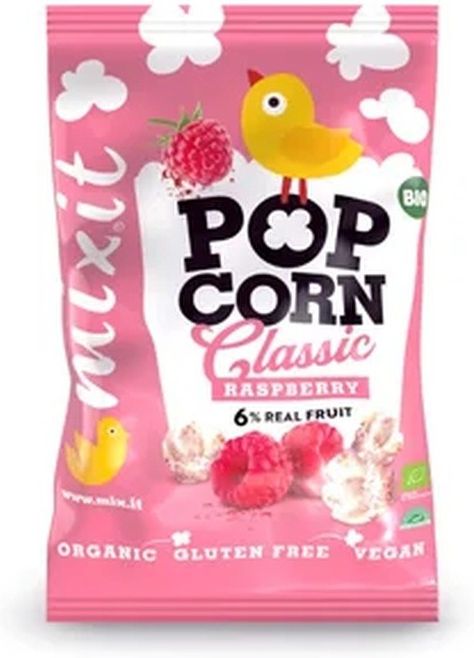 Mixit Duży BIO popcorn - Malina, 75 g Prażona kukurydza z maliną Najstarsze znane wzmianki o popcornie pochodzą z Meksyku i sięgają nawet 5600 lat wstecz. Czy odkrycie popcornu było dziełem chrupiącego przypadku? Tego nikt nie wie. :-) Mixit malinowy popcorn jest jednak efektem starannie dobranych …