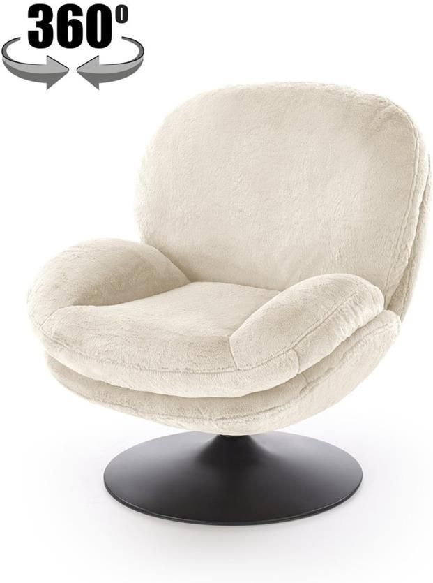 Fotel Wypoczynkowy Obrotowy z Podłokietnikami Tapicerowany Kremowy SHELL SHELL od Halmar Materiał tapicerki: Tkanina LAPIT Kolor tapicerki: Kremowy Materiał stelażu: Metal malowany proszkowo Kolor stelażu: Czarny Funkcja: Obrotowe siedzisko Styl: Nowoczesny ZALETY Kremowa tapicerka z tkaniny LAPIT …