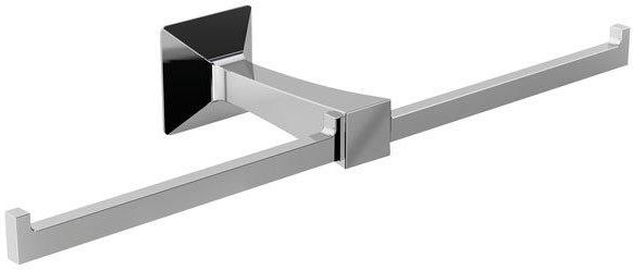 Podwójny uchwyt na papier toaletowy. Unikalny wygląd serii uzyskano dzięki zastosowaniu ostrych krawędzi i chromowanej powierzchni. Dzięki wysokiej jakości materiałom uzyskano wysoką odporność na uszkodzenia. Materiał: mosiądz Wykończenie: chrom Gwarancja: 10 lat Wymiary: 258 x 40 x 88 mm