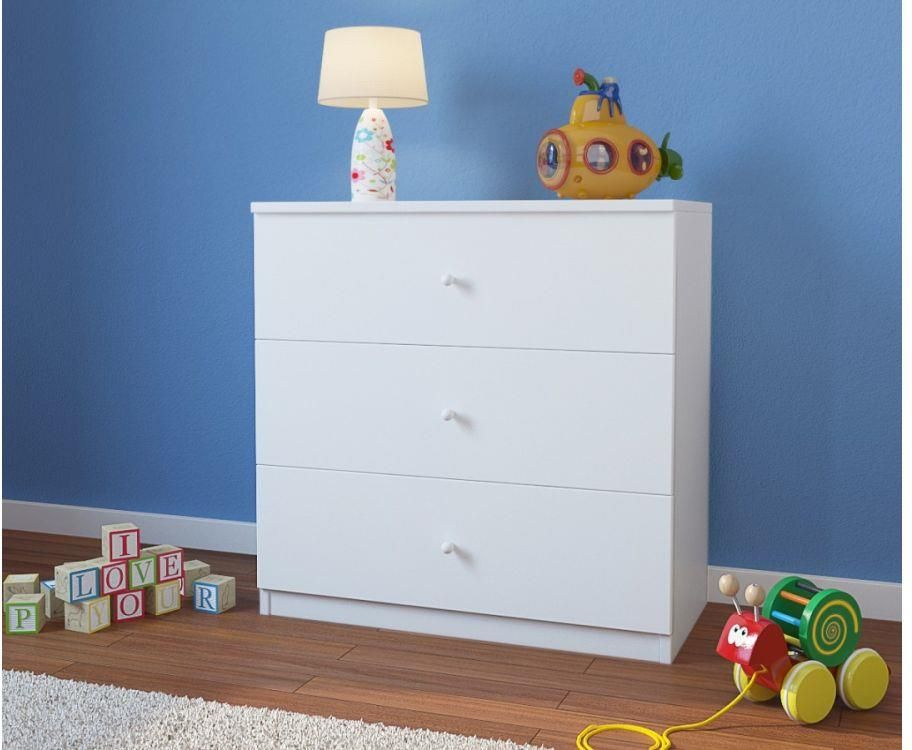 Komoda Baby Dreams (różne kolory) Komoda z kolekcji mebli Baby Dreams to funkcjonalny mebel do dziecięcego pokoju.Pasuje do wielu aranżacji, sprawdzi się w pokoju niemowlaka, chłopca i dziewczynki.Komoda dziecięca posiada 3 pojemne szuflady na prowadnicach rolkowych umożliwiających łatwe użytkowanie. Komoda wykonana jest z wysokiej jakości laminowanej płyty meblowej. Komoda dostępna jest w czterech kolorach: białym, różowym, niebieskim i zielonym.Bogata kolekcja mebli do dziecięcego pokoju Baby Dreams daje możliwość stworzenia wielu konfiguracji ustawień.Meble z kolekcji Baby Dreams można dowolnie ze sobą łączyć, aby stworzyć nowoczesny i funkcjonalny dziecięcy pokoik. Zobacz pozostałe meble z kolekcji Baby Dreams. Szczegóły produktu: Wymiary komody: Wysokość: 80,5 cm Szerokość: 80,7 cm Głębokość: 39,8 cm Głębokość blatu: 41 cm Kolor: Biały / Różowy / Niebieski / Zielony Materiał: Płyta meblowa laminowana Kraj produkcji: Polska