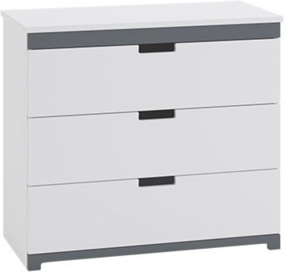 Komoda do pokoju dla chłopca, tomi, 100 cm, biel, mat. Nowoczesna komoda TOMI, posiada trzy pojemne szuflady, które pomogą zachować porządek w pokoju. Szuflady są montowane na wytrzymałych prowadnicach skrzyniowych, z pełnym wysuwem oraz cichym domykiem co zapewnia płynną pracę szuflad. Komoda wykonana z certyfikowanej płyty meblowej 18mm, idealna do pokoju młodzieżowego. Najważniejsze cechy komody do pokoju: Nowoczesna konstrukcja Wysoka jakość wykonania Oryginalny design Ciche domknięcie 3 głębokie funkcjonalne szuflady Innowacyjne rozwiązanie kolorystyczne Instrukcja montażu w przesyłce Meble produkowane w Polsce Bezpieczne lakiery i farby Komoda posiada 3 pojemne szuflady o głębokości 37 cm Szuflada - na prowadnicach rolkowych to gwarancja wygodnego, a przede wszystkim bezpiecznego użytkowania Używane lakiery są bezpieczne dla dzieci i odpowiadają wymaganiom europejskiej normy EN 71/3: 2014 Wymiary: Wysokość: 91 cm Szerokość: 100 cm Głębokość: 45 cm Grubość płyty: 18 mm Dodatkowe informacje: Meble należy czyścić za pomocą delikatnej ściereczki. Nie stosuj silnych środków myjących. Meble do samodzielnego montażu. W opakowaniu znajdują się konieczne akcesoria do złożenia oraz instrukcja montażu