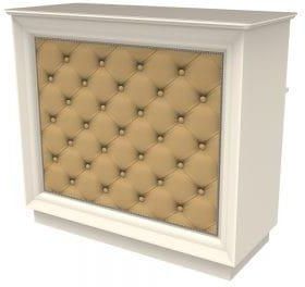 Recepcja Panda Duke II to propozycja dla osób ceniących ponadczasową elegancję i wyjątkowy komfort. Inspiracją dla projektu był styl Chesterfield, który od lat uznawany jest za ikonę designu wnętrzarskiego. Masywna forma, charakterystyczne pikowania oraz efektownie wygięte podłokietniki, które płynnie łączą się z oparciem, podkreślają luksusowy charakter tego mebla i sprawiają, że recepcja staje się centralnym punktem każdego salonu lub przestrzeni usługowej. Recepcja Panda Duke II łączy w sobie klasyczną estetykę z nowoczesną funkcjonalnością. Zastosowane materiały, takie jak lakierowane drewno w kolorze białym oraz wybrane przez klienta obicie, pozwalają na dopasowanie mebla do indywidualnych potrzeb i aranżacji wnętrza. Konstrukcja została zaprojektowana tak, aby była trwała i stabilna, jednocześnie zachowując lekkość wizualną dzięki zintegrowanej bryle i starannie wykończonym detalom. Przemyślane proporcje (wysokość 110 cm, szerokość 126 cm, głębokość 63 cm) zapewniają wygodę zarówno osobie obsługującej, jak i klientom odwiedzającym recepcję. Oparcie i podłokietniki na tej samej wysokości gwarantują ergonomiczne podparcie, a miękkie, pikowane powierzchnie podkreślają prestiżowe wykończenie. Recepcja Panda Duke II doskonale sprawdzi się w eleganckich salonach fryzjerskich, gabinetach kosmetycznych czy butikach, wprowadzając atmosferę luksusu i profesjonalizmu. To mebel, który nie tylko zdobi wnętrze, ale także podnosi standard obsługi klienta, zapewniając komfort i wygodę każdego dnia.