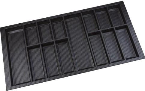 Wkład CLASSICO-Kristall 1000/ wymiar 940 x 490/ czarny wkład na sztućce Wkład Classico na sztućce i akcesoria kuchenne w kolorze czarnym. Wkład pasuje do szuflad o szerokości frontu 1000 mm i głębokości prowadnicy 500 mm. Wkład ma po szerokości i po długości szerszy zapas, który umożliwia …