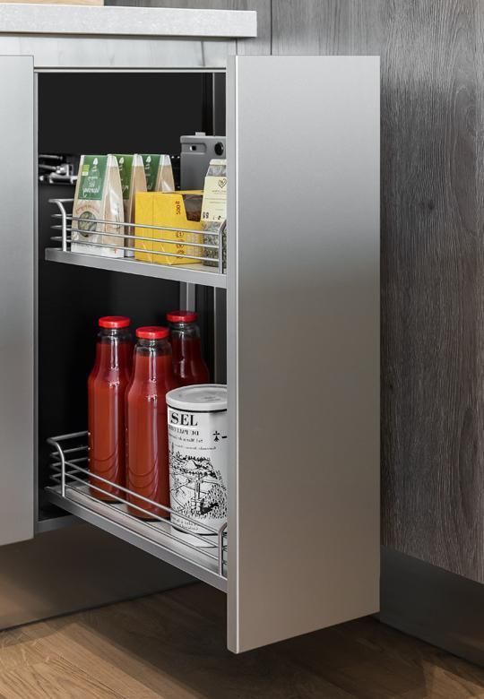 SLIM ARENA CLASSIC SILVER 610 / 250 / 2 / SZARA Dwupółkowy wyciąg typu cargo przeznaczony do szafki podblatowej o szerokości frontu 250 mm. Wyciąg dostępny jest z koszykami z linii ARENA Classic Silver. Kosze wykończone są okrągłymi relingami wykonanymi z malowanego proszkowo drutu i drewnianym …