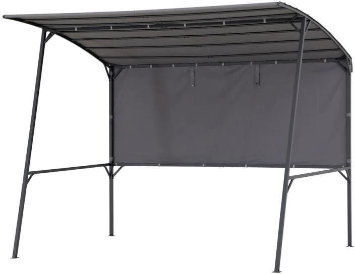 Pawilon ogrodowy pergola 2,2x2,8m szary SUNJOY Zamień swoją przestrzeń na świeżym powietrzu w oazę relaksu dzięki Whirlpool Pergola Vodno. Jeśli bezpośrednie światło słoneczne nie pozwala Ci w pełni cieszyć się ogrodem, ta pergola o wymiarach 284 x 220 cm z malowaną proszkowo stalową ramą jest odpowiedzią, której szukasz. Zaprojektowany specjalnie dla Twojej wygody, posiada regulowany szary, odporny na warunki atmosferyczne baldachim, który zapewnia optymalny cień, dzięki czemu możesz cieszyć się przebywaniem na świeżym powietrzu bez odczuwania ostrego blasku słońca. Dodatkowo na tylnej ścianie została zamontowana kotara ,którą dowolnie możemy rozwijać. Ta kompaktowa, ale przestronna pergola wtapia się w otoczenie, dzięki czemu idealnie nadaje się do przytulnych zakamarków. Oferuje idealną przestrzeń na meble wypoczynkowe i tworzy spokojny wypoczynek we własnym ogrodzie. Dzięki prostemu montażowi i łatwym do wykonania instrukcjom wkrótce będziesz mógł cieszyć się ulubionym napojem i relaksować się w swoim nowym azylu na świeżym powietrzu. Zamów teraz i zacznij tworzyć wspomnienia w swoim idealnym sanktuarium na świeżym powietrzu! W przypadku niekorzystnych warunków pogodowych takich jak: burze , mocne wiatry , ulewy, należy BEZWZGLĘDNIE zdjąć zadaszenie materiałowe ze stelaża. W przypadku takiej pogody, należy także rozpiąć i przywiązać do słupków wszystkie moskitiery i zasłony. Charakterystyka: Producent: Sunjoy Kolor: szary Szerokość słupka nośnego : 3,5 cm Dach (dł. x szer.): 284 x 219 cm Wysokość całkowita: 233 cm Masa: około 32 kg Stelaż: stal – malowana proszkowo na kolor antracytu Odporna na promieniowanie UV Możliwość demontażu dachu i podwinięcia tylnej ściany Szybki montaż materiałów na rzepy