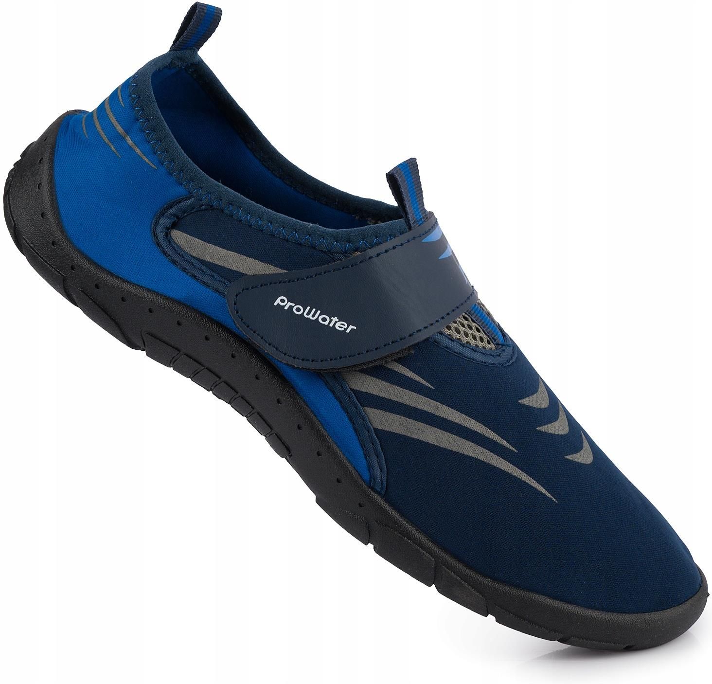 PROWATER BUTY DO WODY, NA PLAŻĘ ORAZ DO PŁYWANIA Buty do wody ProWater cechują się wysoką jakością wykonania oraz szybkoschnącymi materiałami, które zapewniają komfort podczas noszenia. Ich uniwersalny design sprawia, że będą odpowiednie zarówno na plażę, basen czy letnie spacery nad wodą. Buty posiadają praktyczne zapięcie na rzep, umożliwiające idealne dopasowanie. Dodatkowa siateczka zapewniająca cyrkulację powietrza oraz podeszwa o właściwościach antypoślizgowych stanowią dodatkowe atuty tego modelu. Oferowane buty to wybór doskonały dla aktywnych osób ceniących komfort i funkcjonalność podczas letnich przygód nad wodą. Informacje ogólne Producent: ProWater Wykonanie: materiał syntetyczny / materiał tekstylny Kolor: granatowy / niebieski Rozmiar: 45 Długość wkładki mierzona: 30,0 cm Charakterystyka i zalety Logo marki podkreśla brand oraz jakość produktu Zapięcie na rzep gwarantuje idealne dopasowanie do stopy, co znacząco poprawia komfort użytkowania Pętelka z tyłu buta uławia zakładanie i zdejmowanie Podeszwa posiada właściwości antypoślizgowe Twardsza podeszwa odpowiednio zabezpiecza stopy przed urazami, na które jesteśmy narażeni podczas pobytu nad wodą Miękka cholewka z materiału syntetycznego, która przepuszcza wodę, a dzięki jej właściwościom szybkoschnącym po wyjściu na ląd, buty bardzo szybko wysychają Wykonane w uniwersalnej kolorystyce Zapewniają bardzo dobrą ochronę stopy przed ostrymi kamieniami, muszlami i rafą podczas wypoczynku!