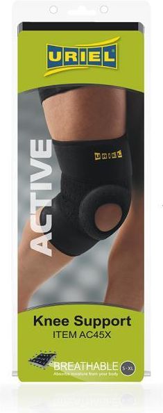 Uriel Otwarta Orteza Stawu Kolanowego 1 szt.Stabilizator kolana jest idealny przy drobnych urazach. Przynosi ulgę zmęczonym i obolałym kolanom i rzepce.Zakładany na rzepkę aby zmniejszyć ból i dyskomfort.Wykonany z neoprenu i oddychającej tkaniny. Posiada zapięcie na rzep, które umożliwia optymalne dopasowanie do rozmiaru kolana.Instrukcja zakładania:Owinąć wokół kolana, jak pokazano na rysunku.Zabezpieczyć za pomocą rzepów w ciasnym ale zarazem wygodnym ułożeniu.Rozmiar uniwersalny