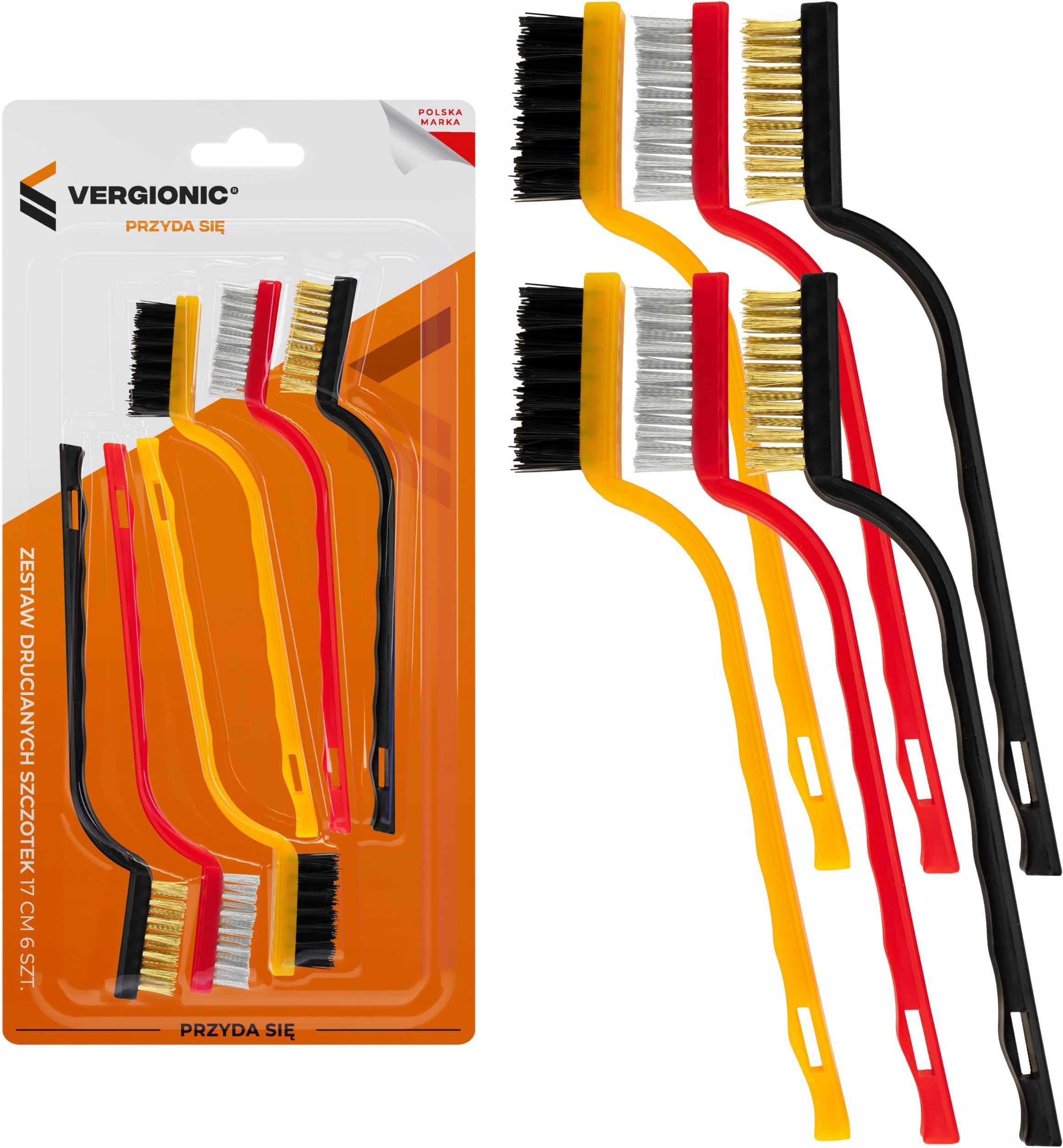 Zestaw szczotek druciane ,żelazne, mosiężne 17 cm 6 szt. mix Towar zapakowane fabrycznie przez producenta. W skład zestawu wchodzi 2x Szczotka mosiężna 2x Szczotka nylonowa 2x Szczotka żelazna Specyfikacja W zestawie: 6 szt. Rodzaj włosia: miedź, żelazo, nylon Materiał rękojeści: PP Długość całkowita: 17 cm Długość włosia: 12 mm Wymiary powierzchni czeszącej: 35 x 8 mm Kolor: czarny, żółty, czerwony Waga: 55 g Waga z opakowaniem: 73 g Waga 1 sztuki: 8-10 g Zestaw szczotek drucianych, to narzędzie przeznaczone do szerokiego zakresu zastosowań w czyszczeniu, polerowaniu i usuwaniu zanieczyszczeń z różnych powierzchni. Dzięki szczotkom można skutecznie rozwiązać wiele problemów związanych z utrzymaniem czystości i konserwacją powierzchni metalowych, drewnianych i innych materiałów. Każda ze szczotek jest kompaktowych rozmiarów. Ma 17 cm długości, co powoduje, że jest poręczna, wygodna i nie zajmuje dużo miejsca w domowej czy warsztatowej szufladzie. Powierzchnia czesząca ma wymiar 35 x 8 mm a druciane włosie mierzy 12 mm. Mimo niewielkich rozmiarów, szczotki odporne są na duże obciążenie siły odśrodkowej oraz korozję. Rękojeść, wykonana z polipropylenu (PP), została w specjalny sposób wygięta i wyprofilowana, aby znacząco podnieść funkcjonalność i ergonomię pracy. W zestawie znajdują się dwie szczotki mosiężne, dwie nylonowe oraz dwie żelazne. Każdy rodzaj ma inne właściwości, dzięki czemu można je dostosować do różnorodnych zadań. Szczotki mosiężne (z czarną rękojeścią) najczęściej wykorzystywane są do usuwania rdzy, farby i pozostałości lakieru z powierzchni metalowych, miedzianych czy mosiężnych, nie niszcząc ich. Szczotki nylonowe (z żółtą rękojeścią) są najbardziej uniwersalne, nadają się do czyszczenia i matowienia różnych powierzchni. Posiadają elastyczne włosie umożliwiające pracę nawet w trudno dostępnych miejscach. Świetnie nadadzą się do czyszczenia fug. Szczotki żelazne (z czerwoną rękojeścią) bez trudu rozprawią się z rdzą czy starymi powłokami lakierniczymi. Dedykowane są do usuwania najcięższych zabrudzeń a także do przygotowania powierzchni przed malowaniem lub spawaniem. Idealnie sprawdzą się także do czyszczenia felg samochodowych.